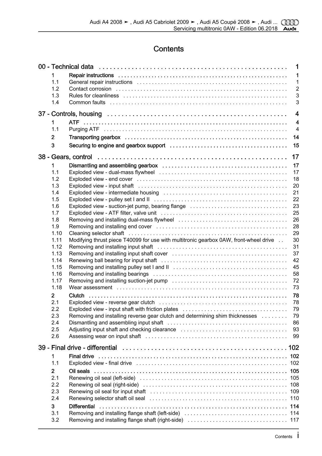 Audi A6 type 4G 2010-2018 servicing multitronic gearbox 0AW repair manual eBook