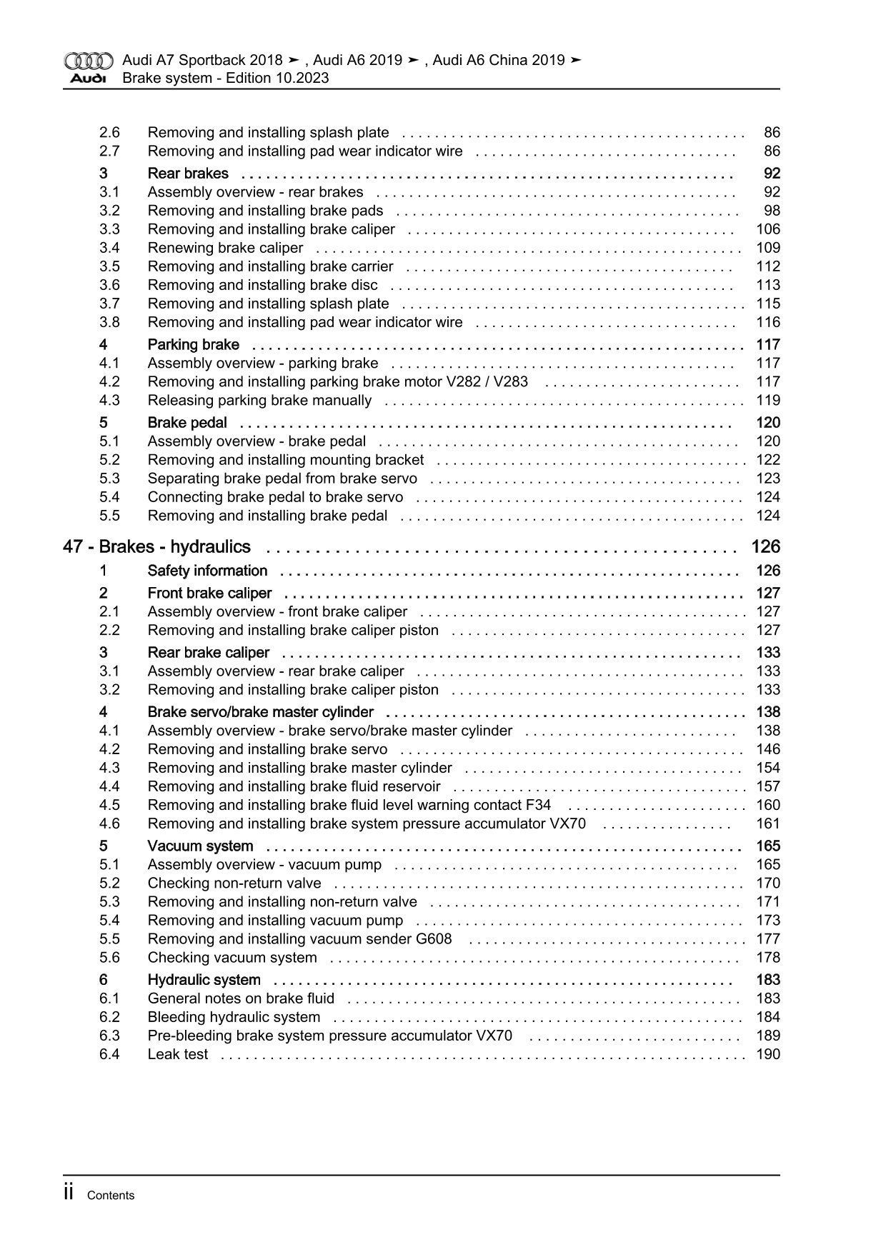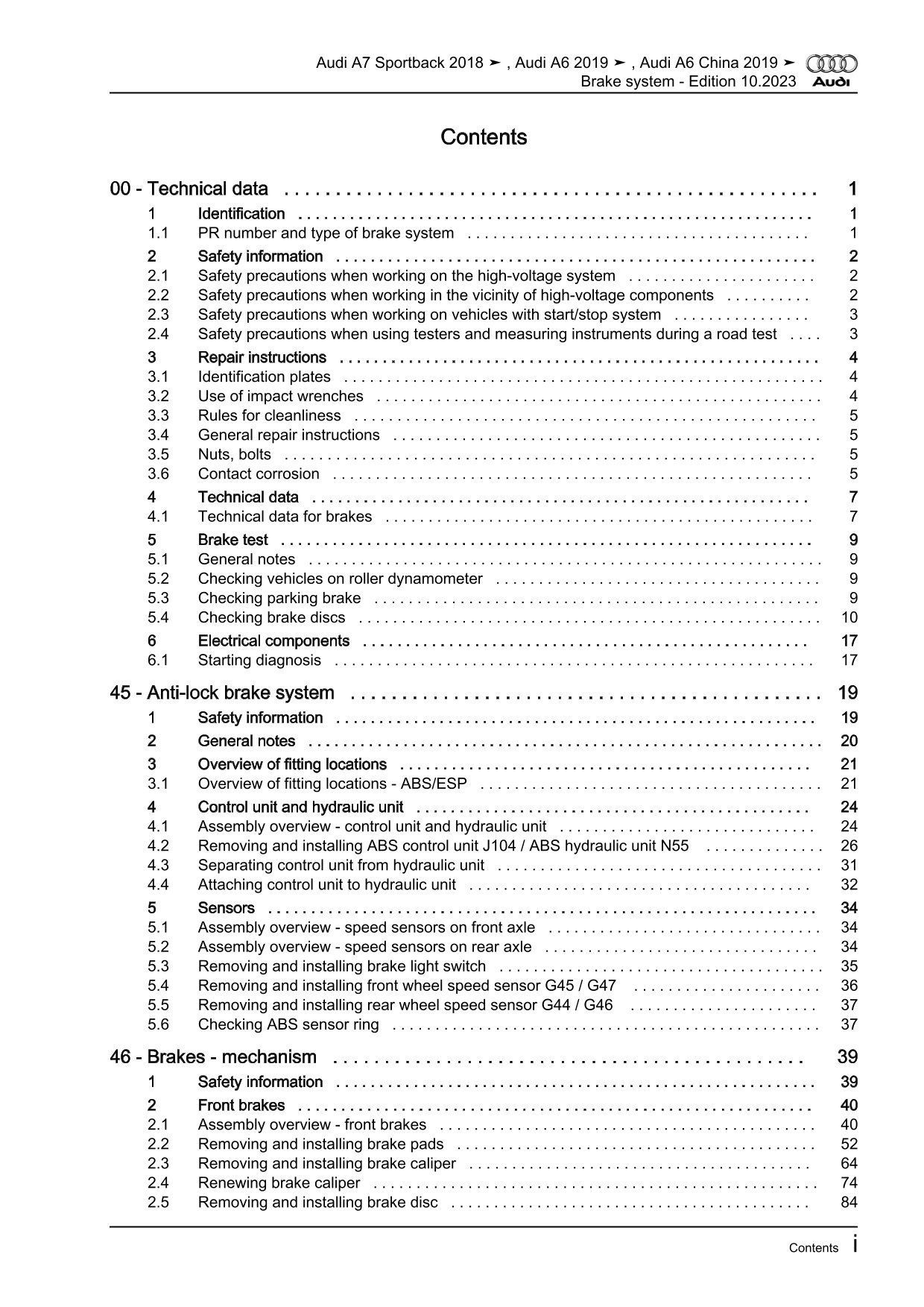 Audi A6 type 4K 2018-2023 brake systems repair workshop manual eBook pdf