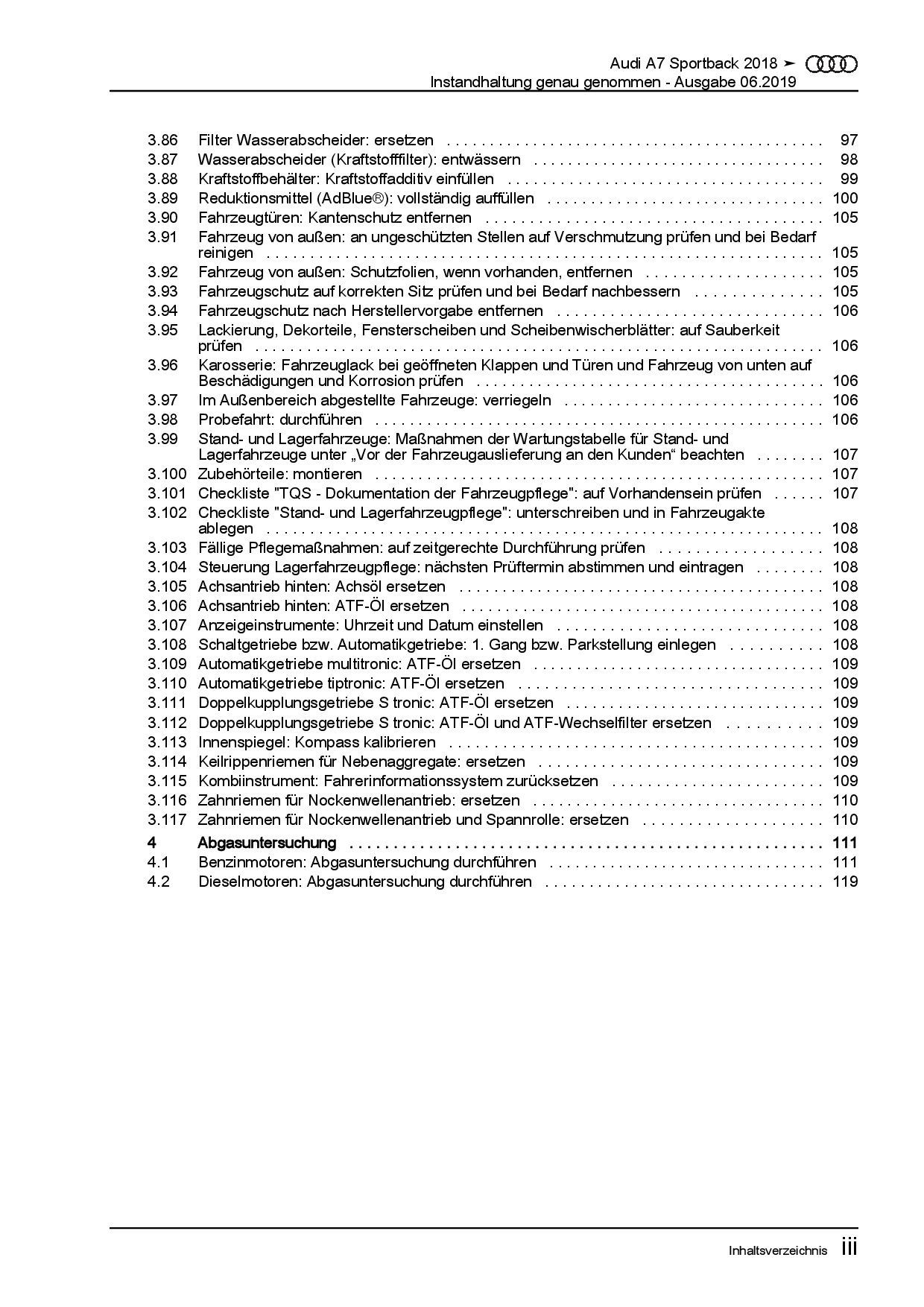Audi AG Audi A7 Typ 4K ab 2018 Instandhaltung Inspektion Wartung Reparaturanleitung PDF