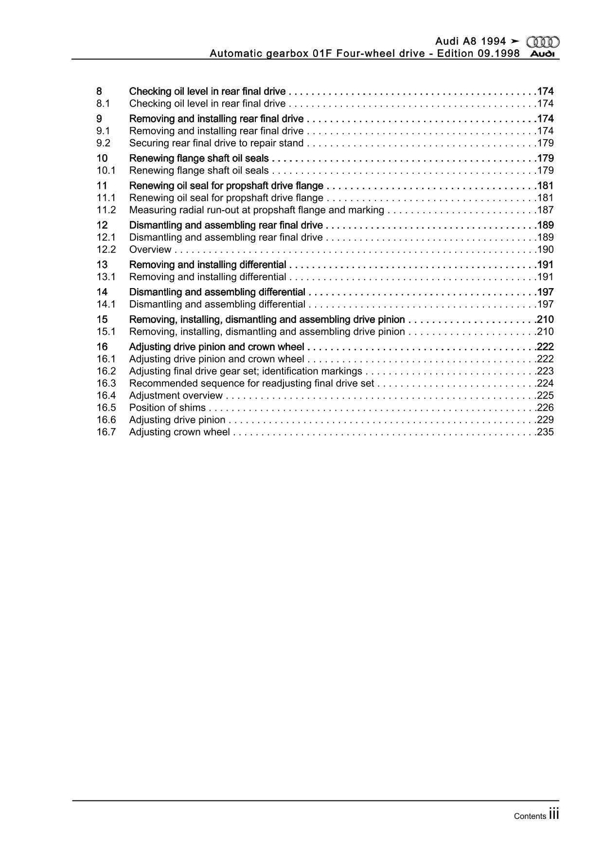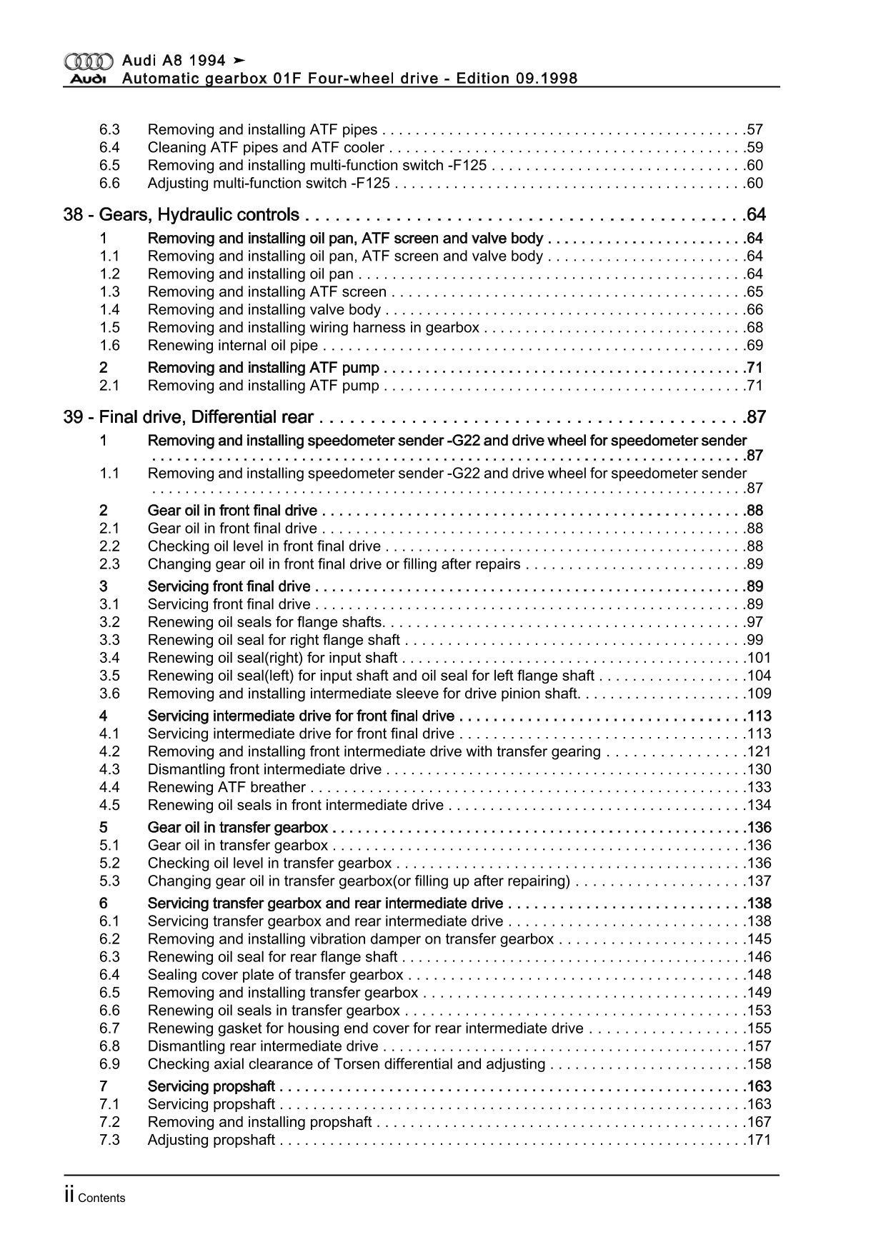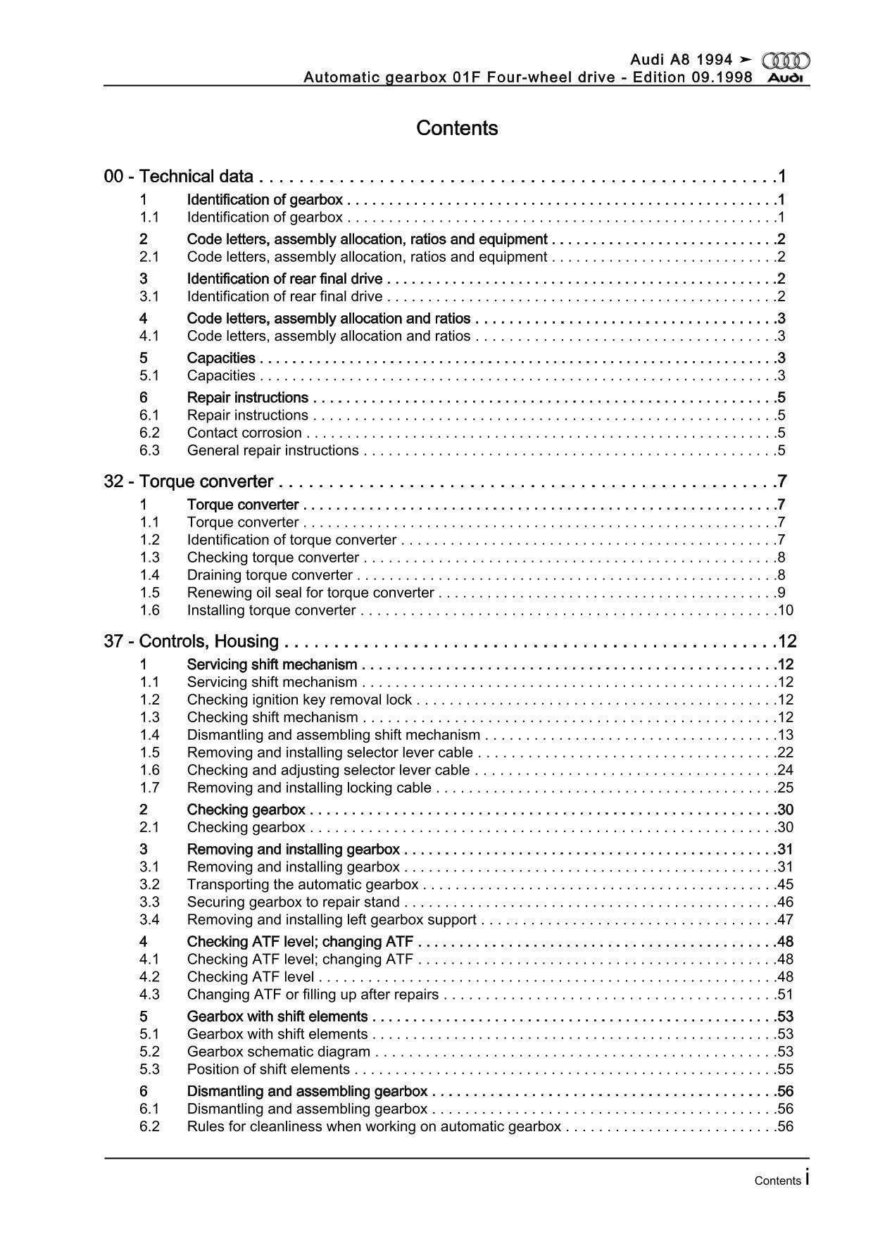 Audi A8 4D 1994-2002 4 speed automatic gearbox 01F repair workshop manual eBook