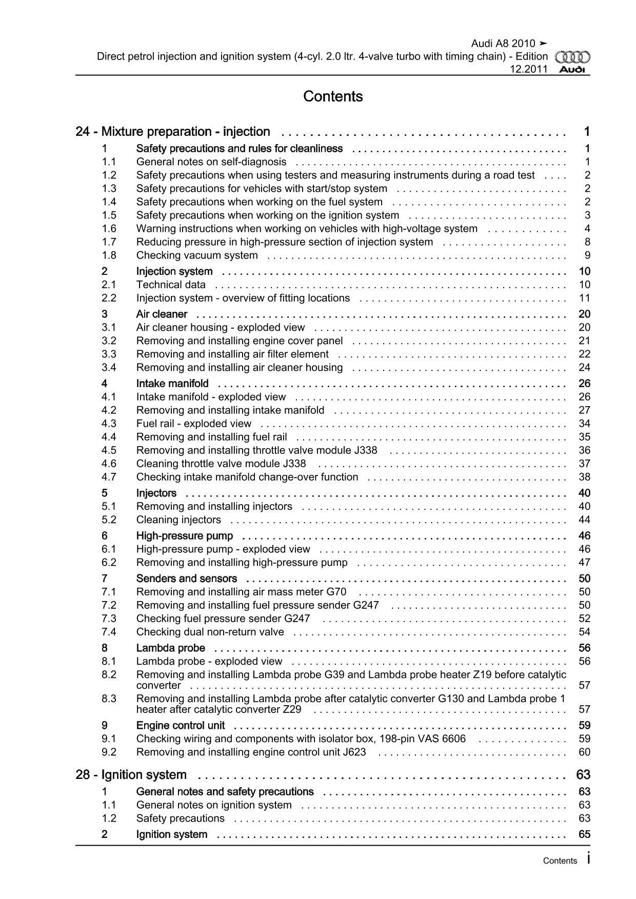 Audi A8 4H 2010-2017 direct injection ignition system 211 hp repair manual eBook