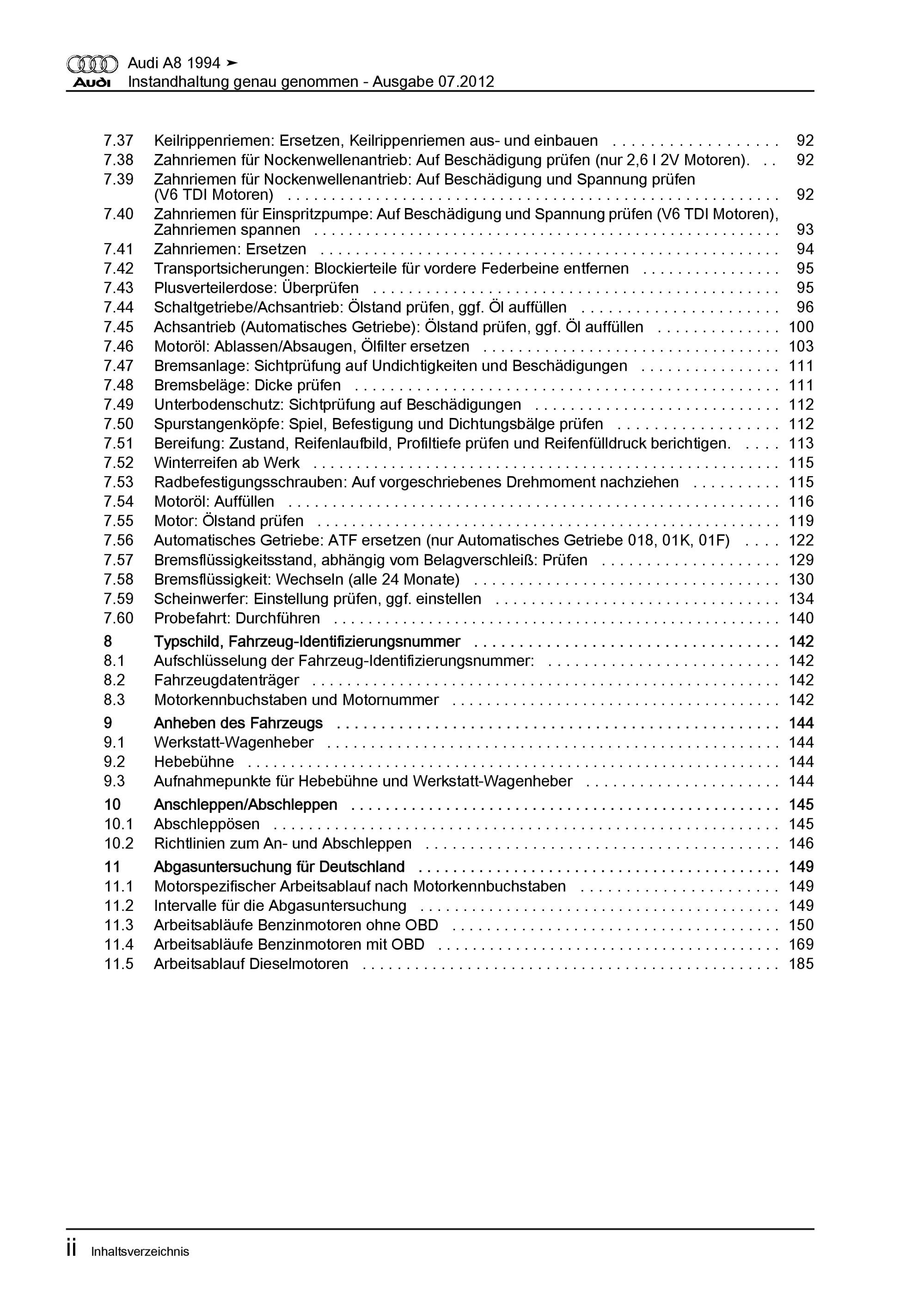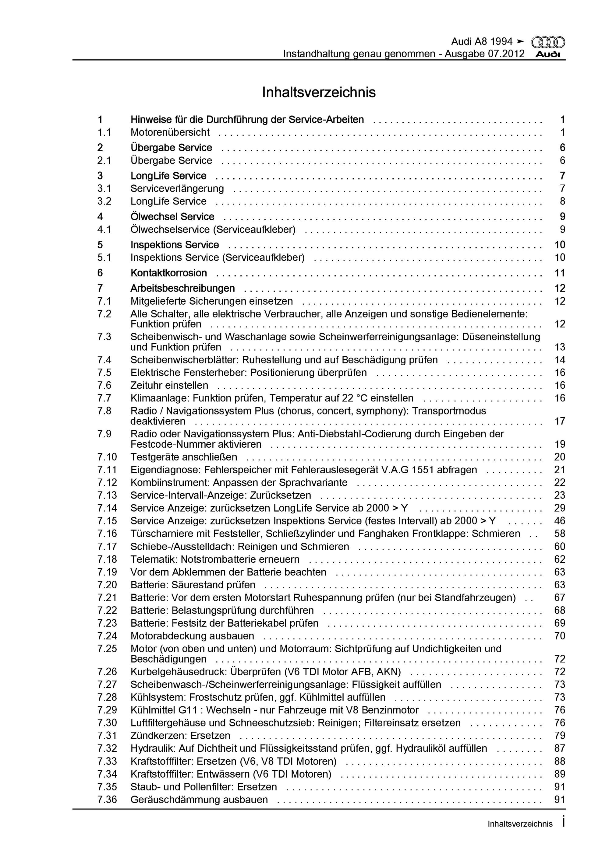 Audi AG Audi A8 Typ 4D 1994-2002 Instandhaltung Inspektion Wartung Reparaturanleitung