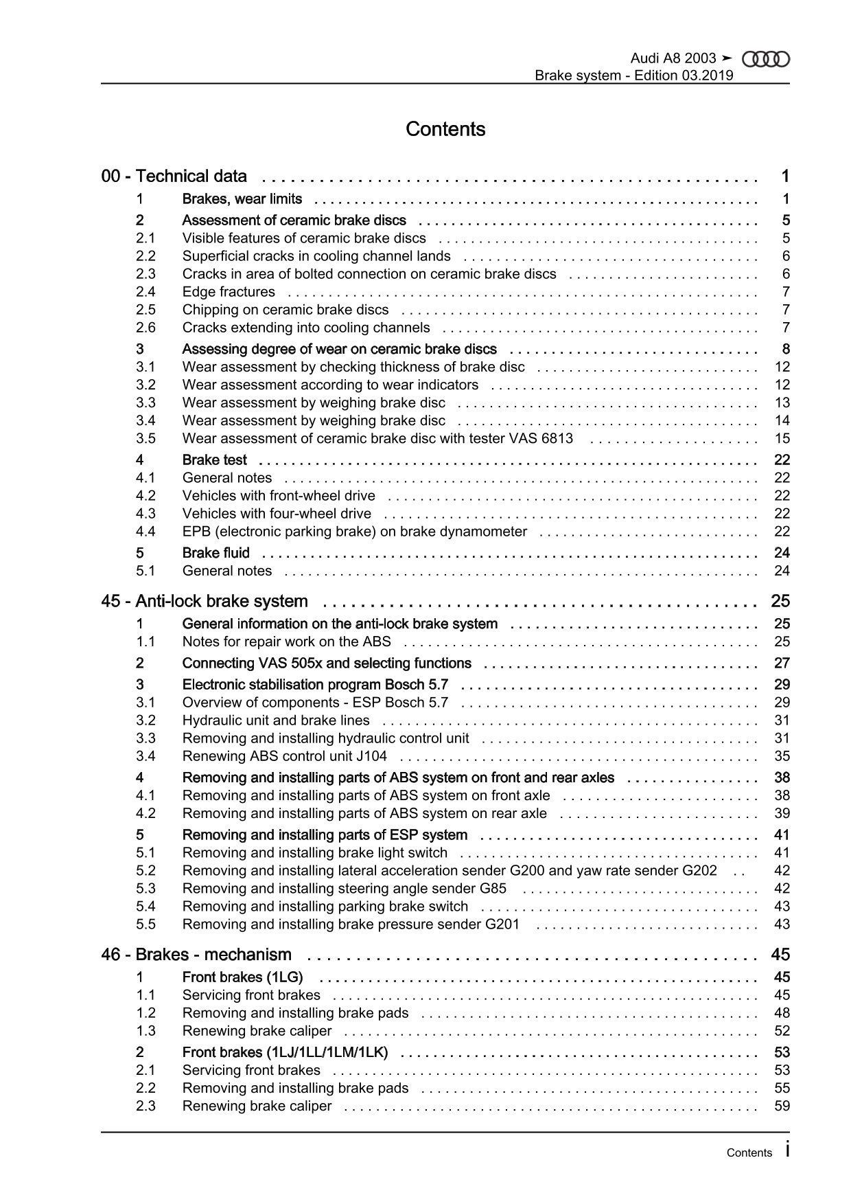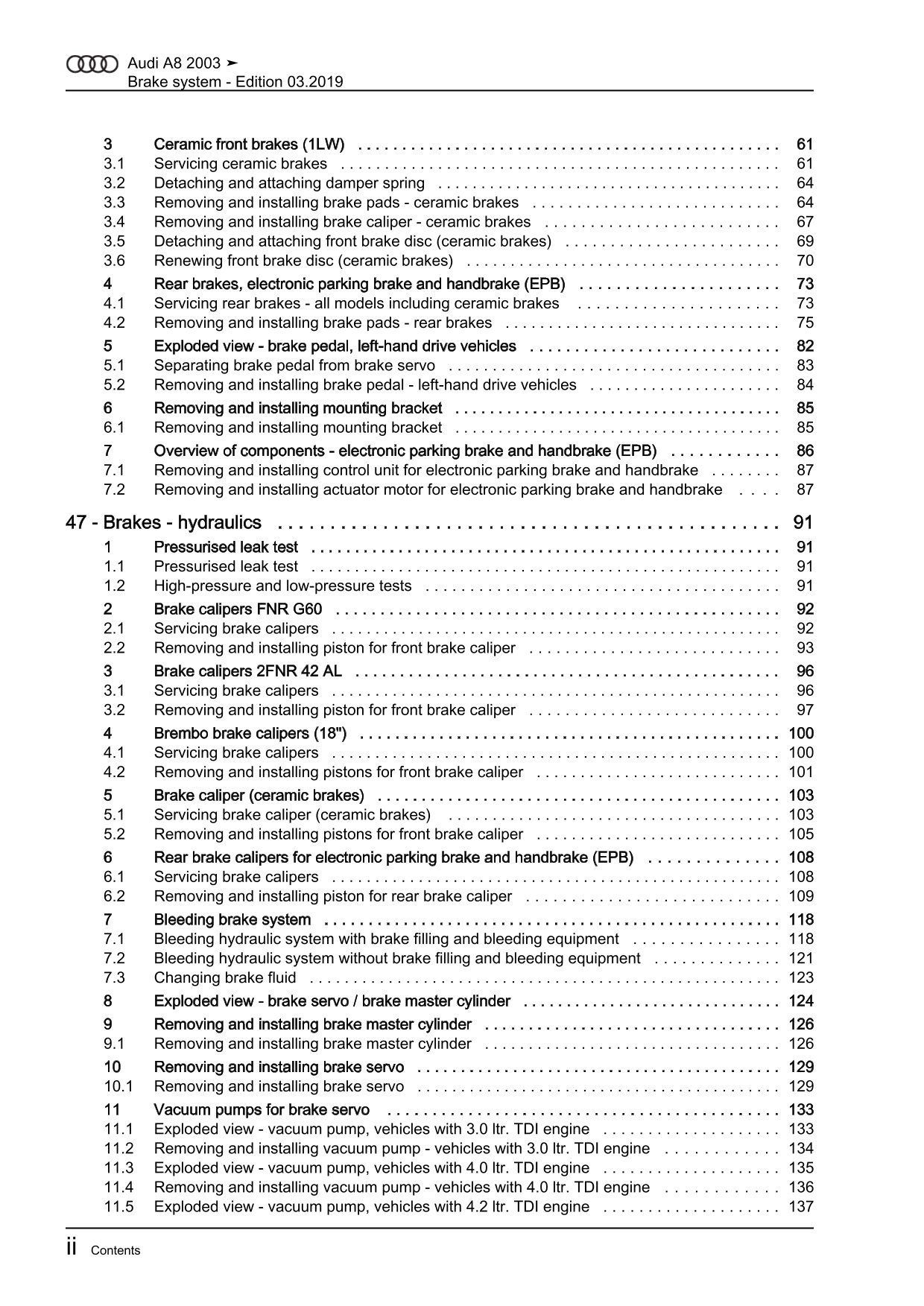 Audi A8 type 4E 2002-2010 brake systems repair workshop manual eBook guide pdf
