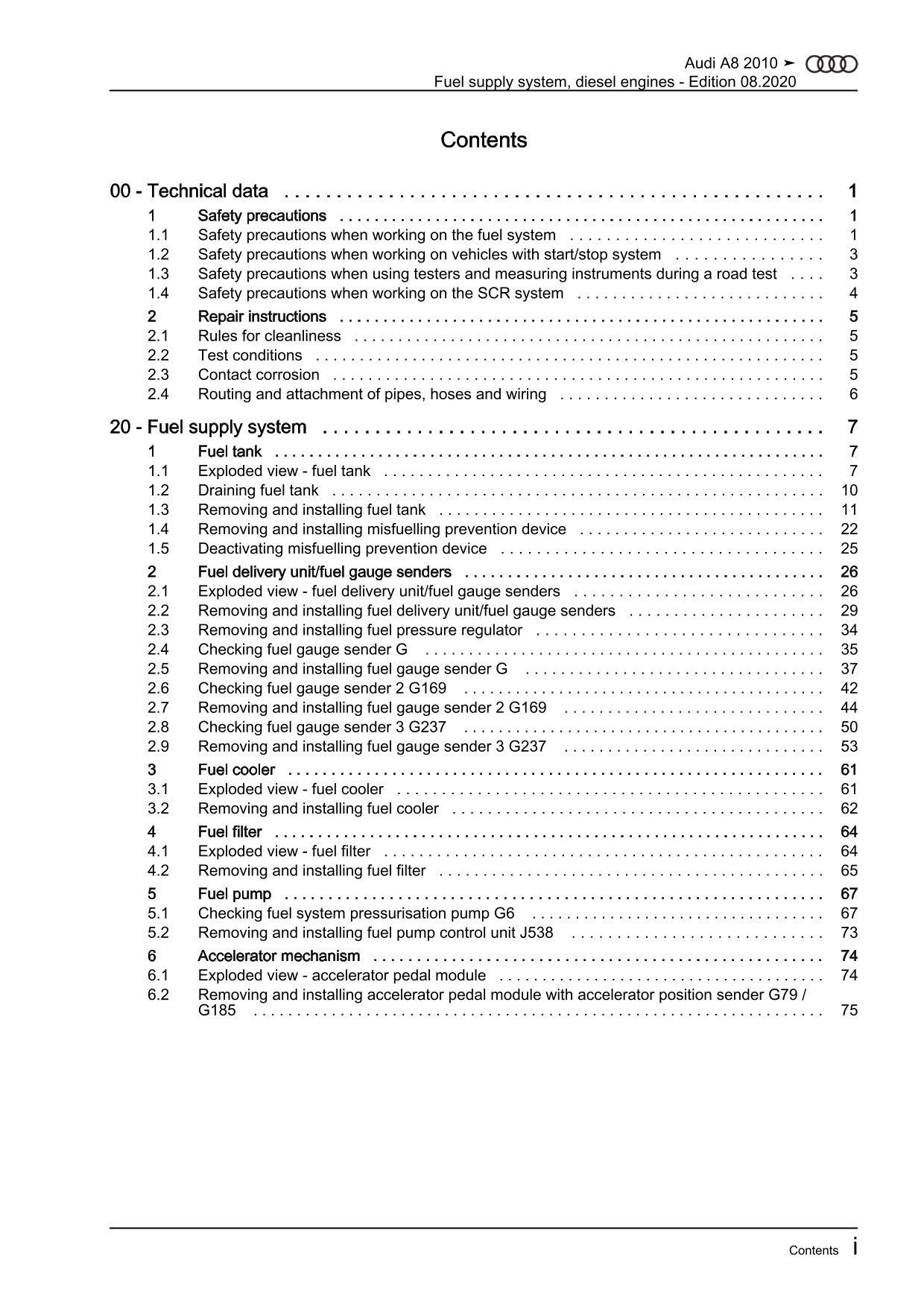 Audi A8 type 4H 2010-2017 fuel supply system diesel engines repair manual eBook