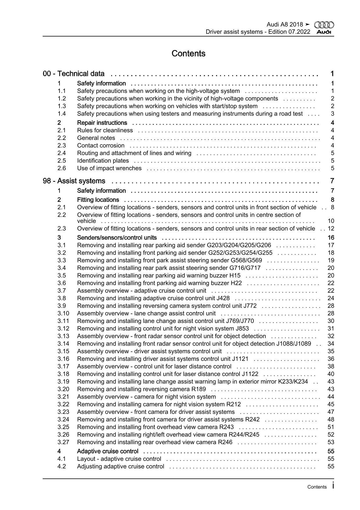 Audi A8 type 4N 2017-2021 drivers assist system repairs workshop manual eBook