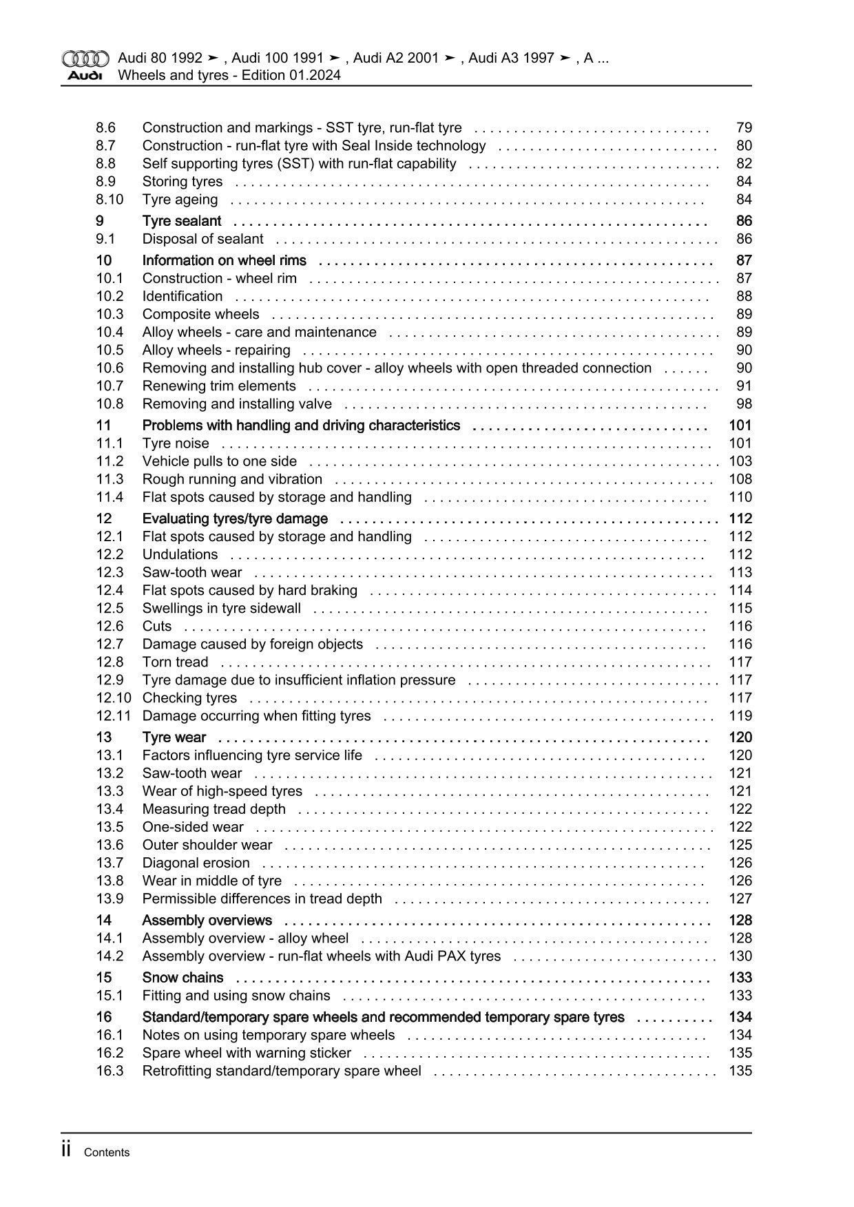 Audi Cabrio 8G 1991-2000 wheels tyres general info repair workshop manual eBook