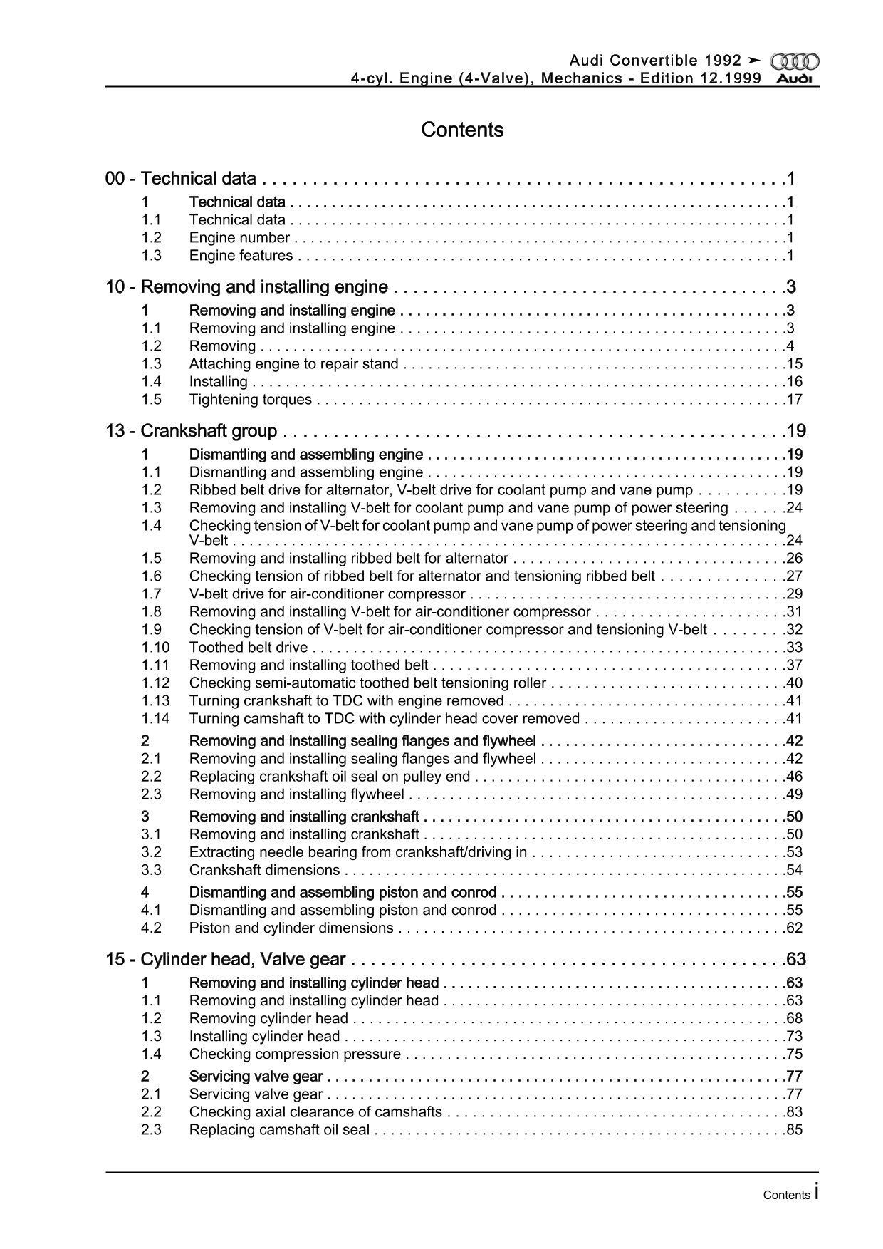 Audi Cabrio type 8G 1991-2000 petrol engine mechanics 140 hp repair manual eBook