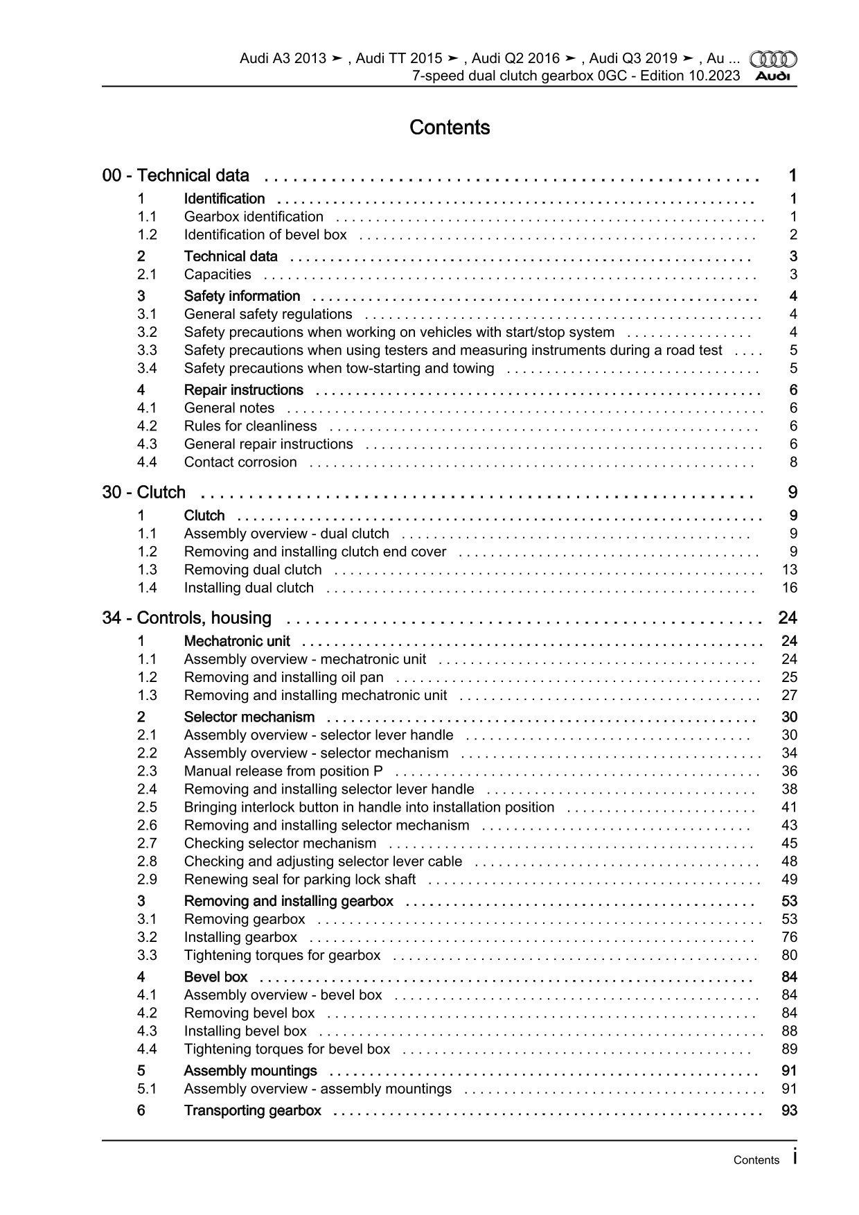 Audi Q2 type GA from 2016 7 speed dual clutch gearbox 0GC repair manual eBook