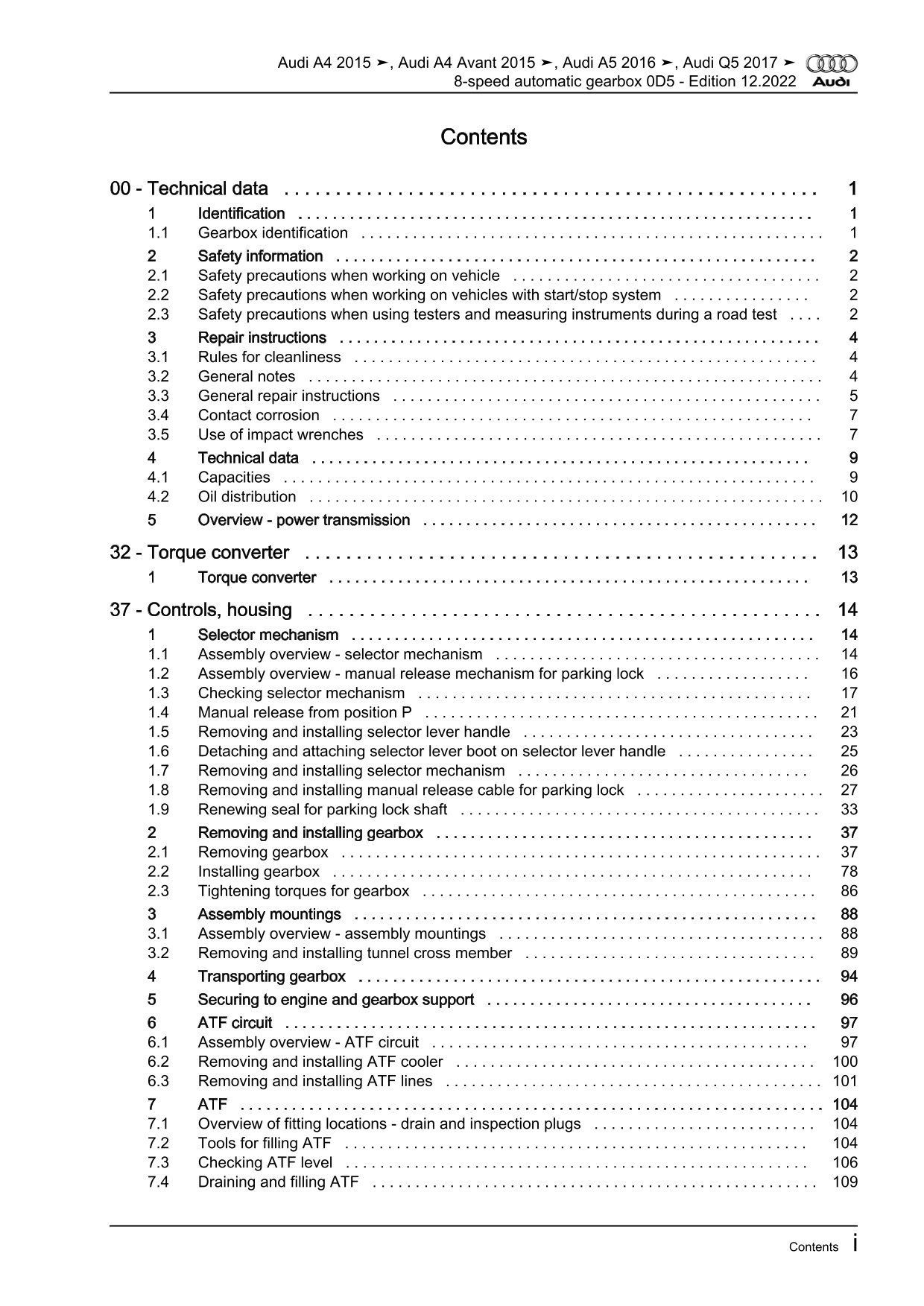 Audi Q5 type FY 2016-2020 8 speed automatic gearbox 0D5 repair manual eBook