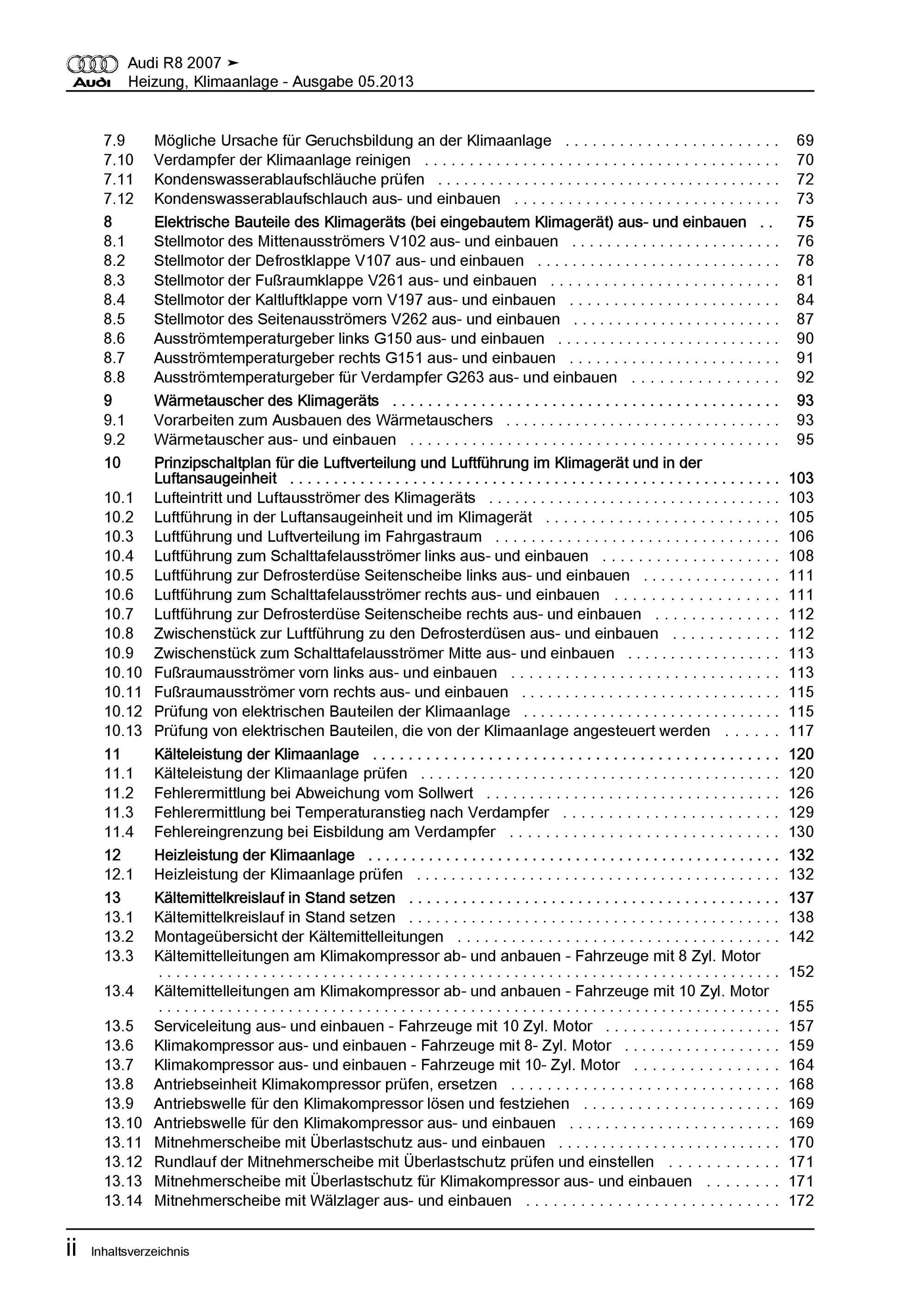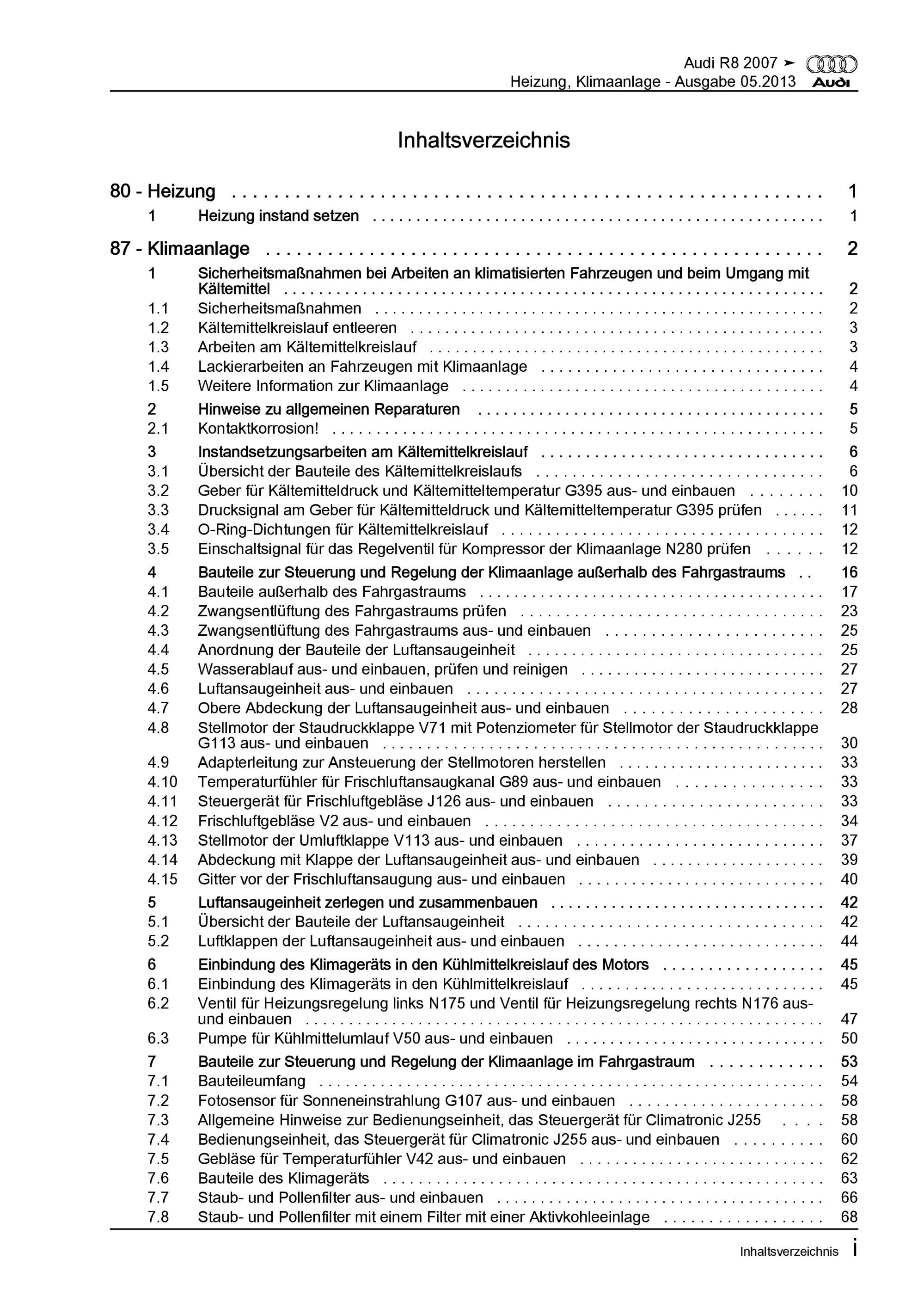 Audi AG Audi R8 Typ 42 2006-2015 Heizung Belüftung Klimaanlage Reparaturanleitung