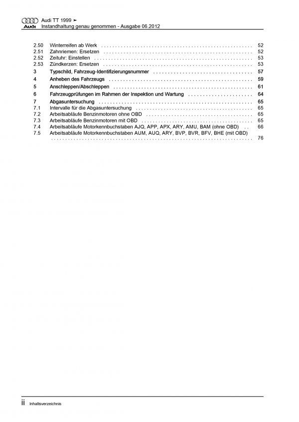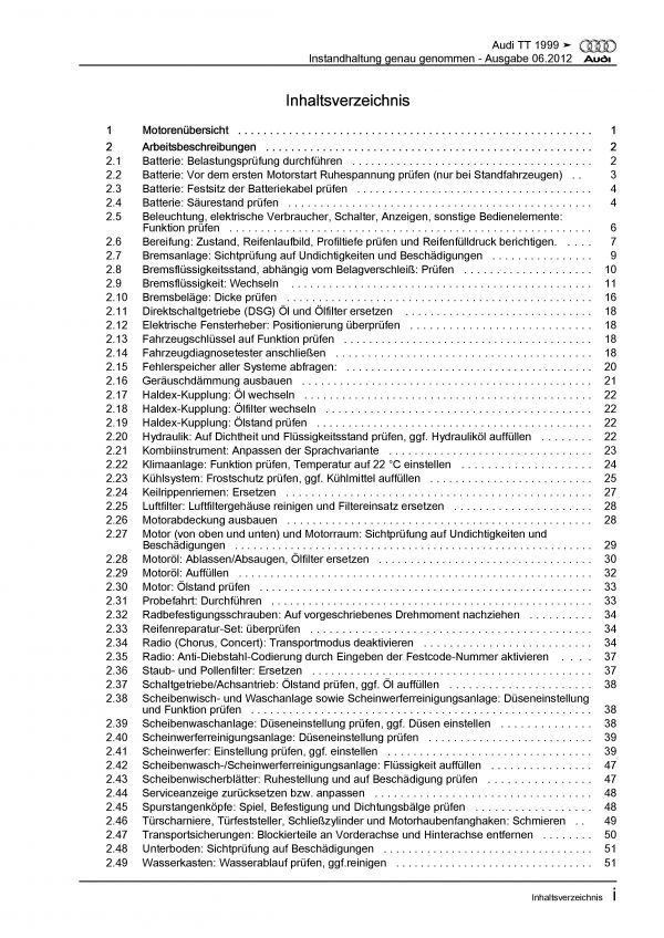 Audi AG Audi TT Typ 8N 1998-2006 Instandhaltung Inspektion Wartung Reparaturanleitung