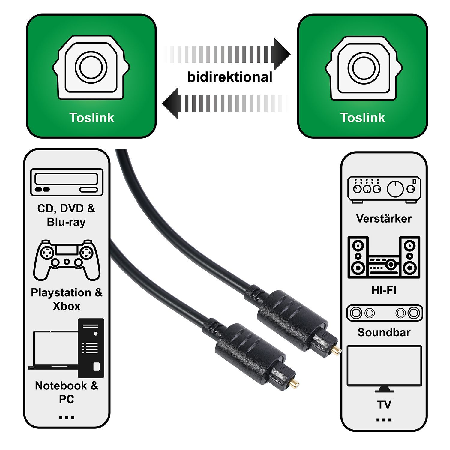 Hama Audio Lichtleiter-Kabel ODT-Stecker (Toslink) 1,5m
