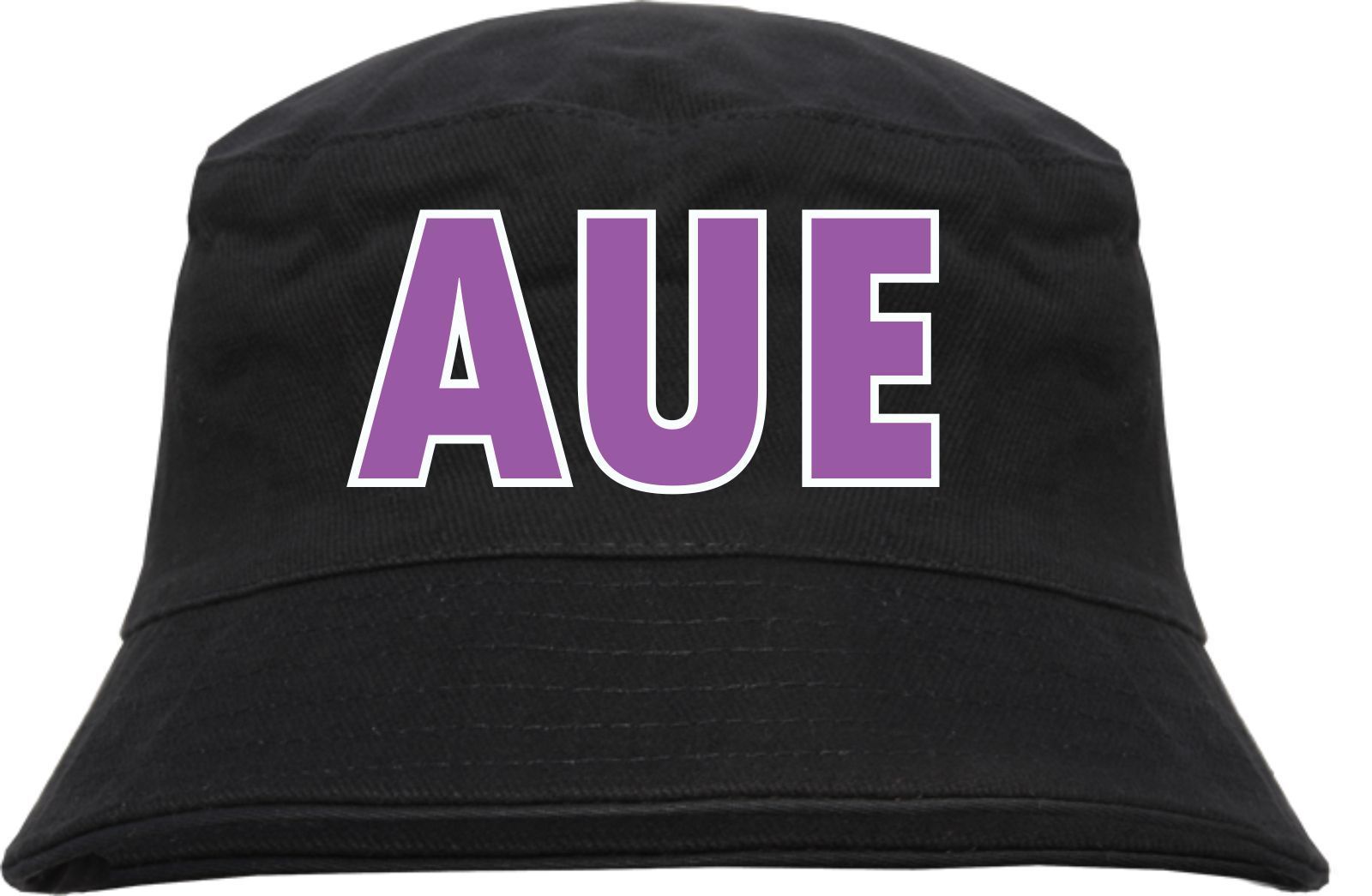 Aue Fischerhut - bedruckt - Bucket Hat Anglerhut Hut Blockschrift Lila Weiss