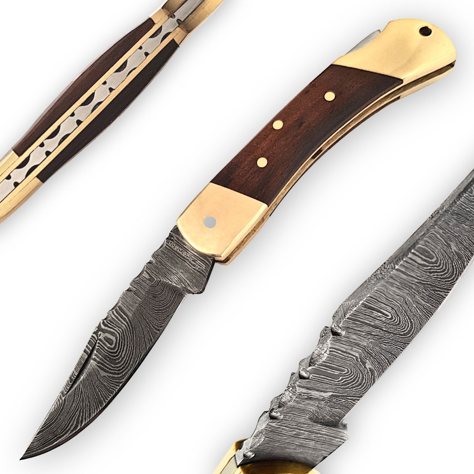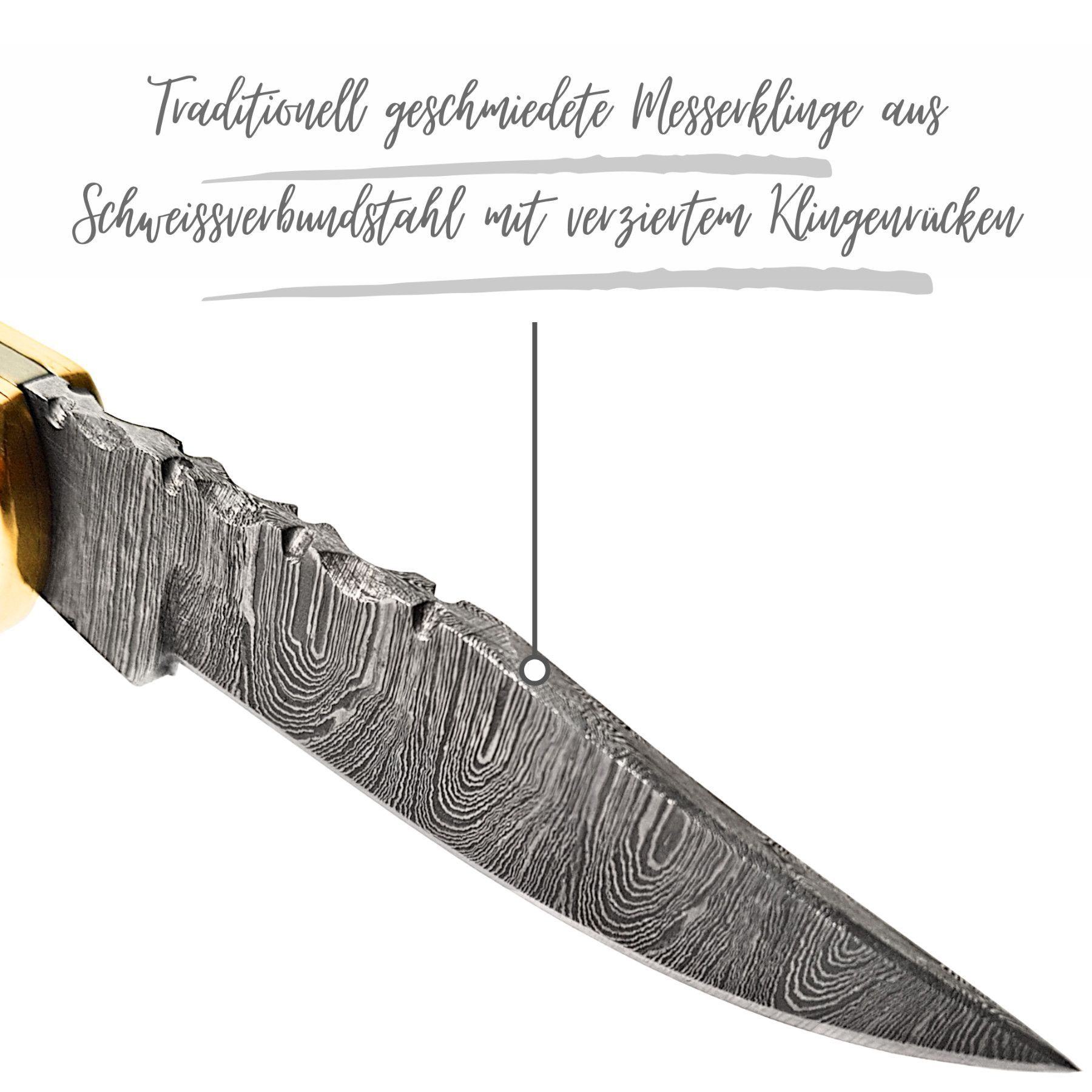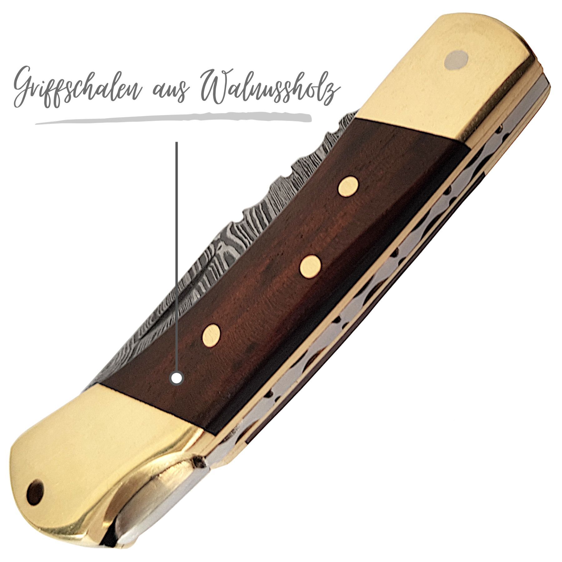 Auerbach Damastmesser Nussbaumholz "Julius" Taschenmesser aus trad. Handarbeit