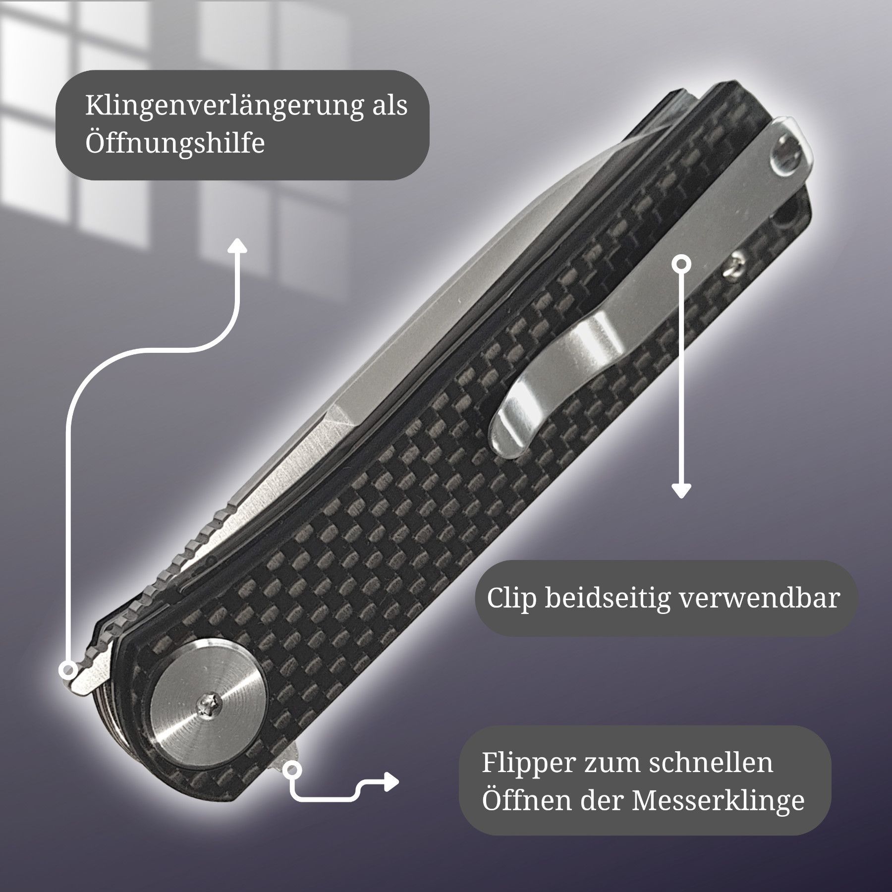 • Achten Sie bei Klappmessern darauf, dass Ihre Finger nicht im Weg der Klinge sind, sowohl beim Öffnen als auch beim Schließen.