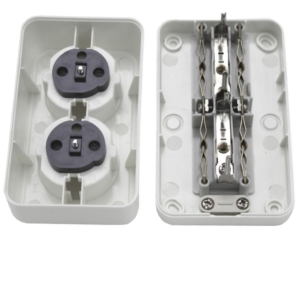 Aufbau Aufputz Schuko Steckdose Wohnwagen Wohnmobil Caravan 220V - 230V weiß doppel