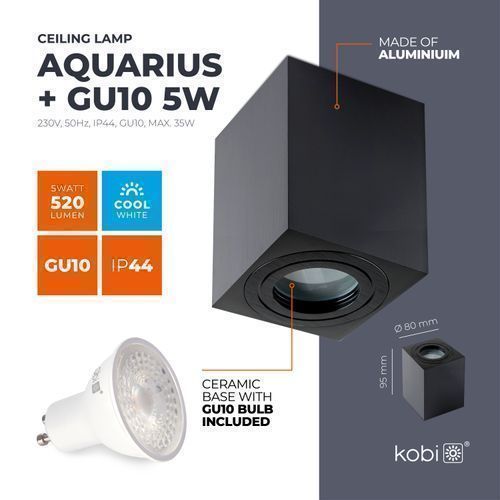 Aufbauspot Aquarius Deckenleuchte Rechteckig Form Farbe Schwarz Aluminium IP44