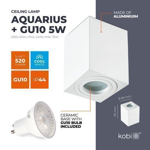 Aufbauspot Aquarius Deckenleuchte Rechteckig Form Farbe WEIß Aluminium IP44
