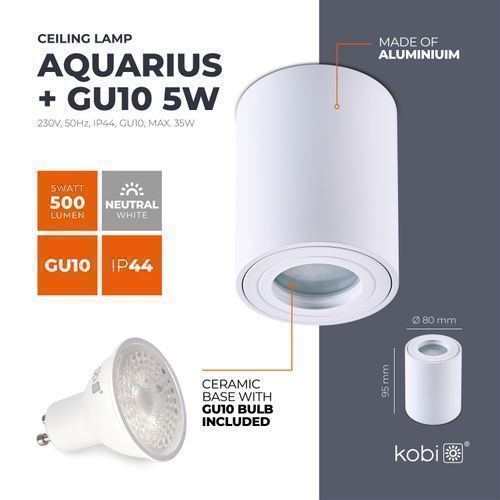 Aufbauspot Aquarius Deckenleuchte RUNDE Form Farbe WEIß Aluminium IP44