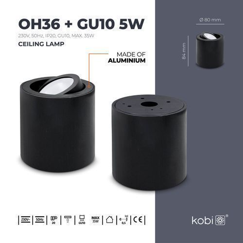 Aufbauspot OH36 Deckenleuchte RUND Farbe Schwarz Deckenstrahler Aluminium IP20 LED