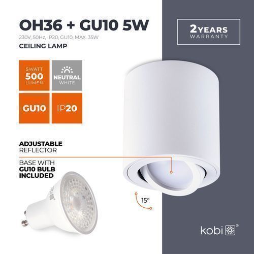 Aufbauspot OH36 Deckenleuchte RUND Farbe WEIß Deckenstrahler Aluminium IP20 LED