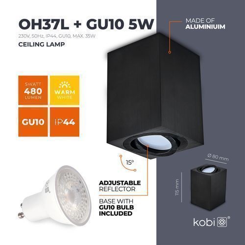 Aufbauspot OH37 Deckenleuchte Rechteck Farbe Schwarz Deckenstrahler Aluminium