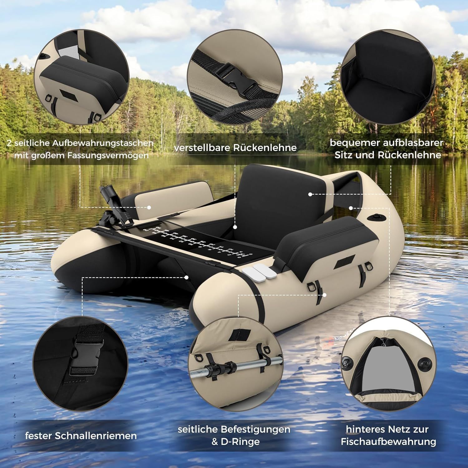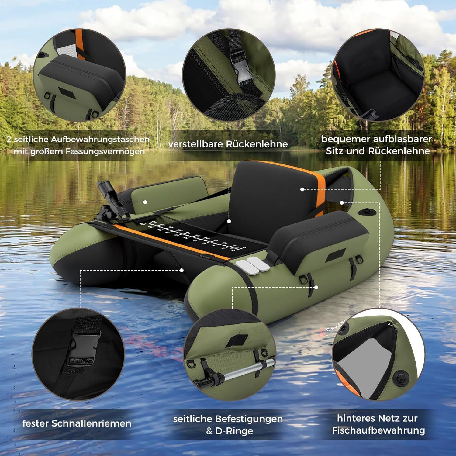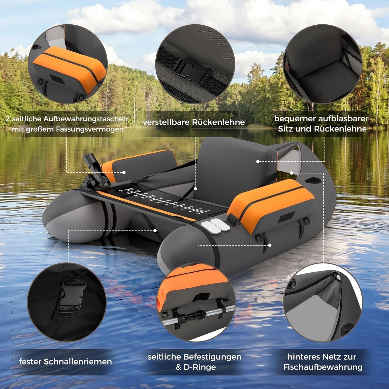 Aufbelasbares Schlauchboot, Angelboot mit Verstellbarer Rückenlehne, Fischerboot
