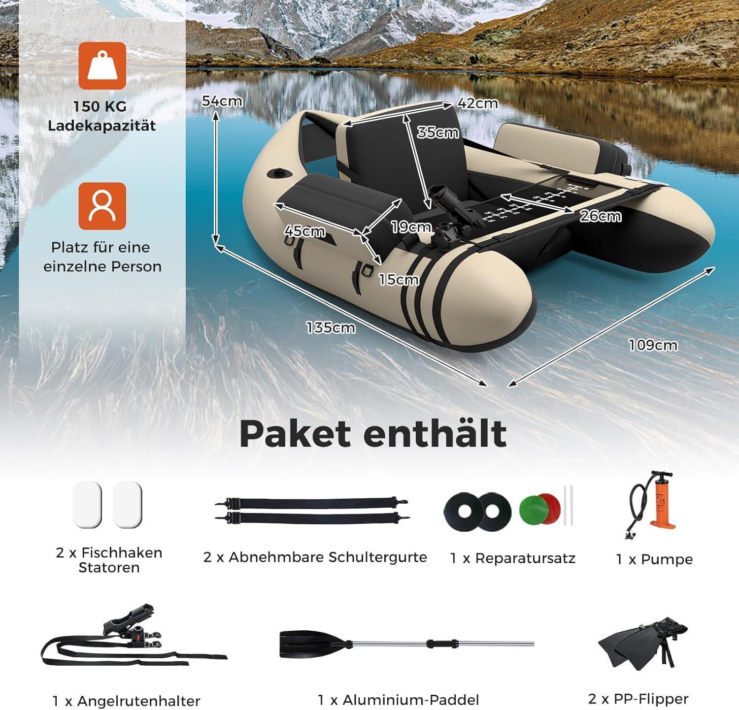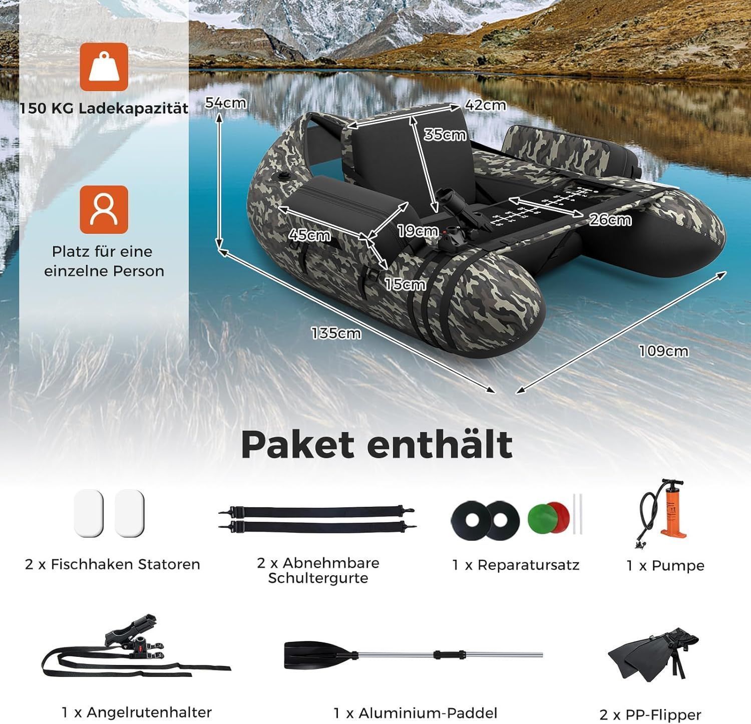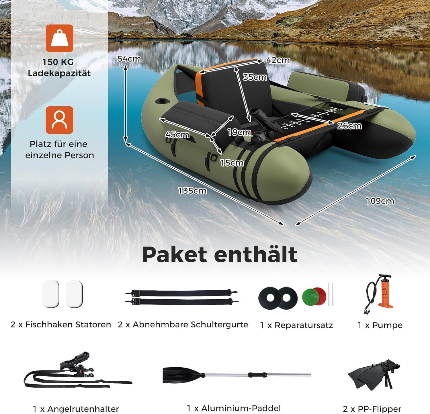 Aufbelasbares Schlauchboot, Angelboot mit Verstellbarer Rückenlehne, Fischerboot