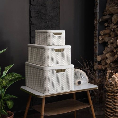 Curver Aufbewahrungsbox mit Deckel Natural Style L Creme CURVER