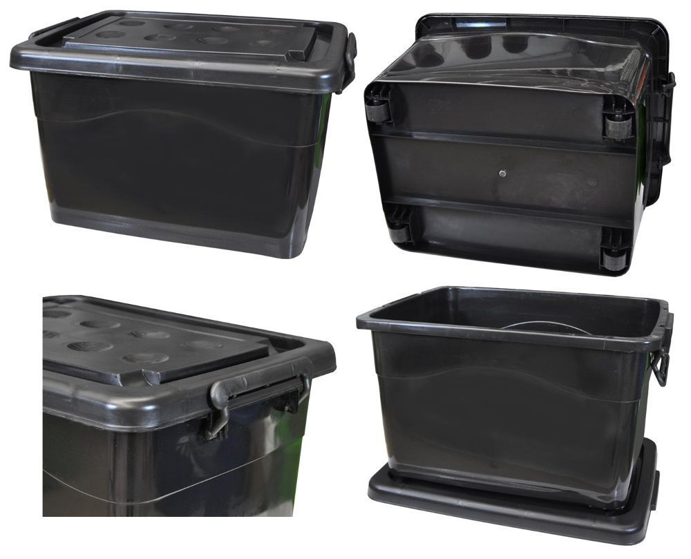 Aufbewahrungsbox, Rollenbox, mit Deckel, 40 Liter, schwarz, Kiste, Kunststoff (22257)