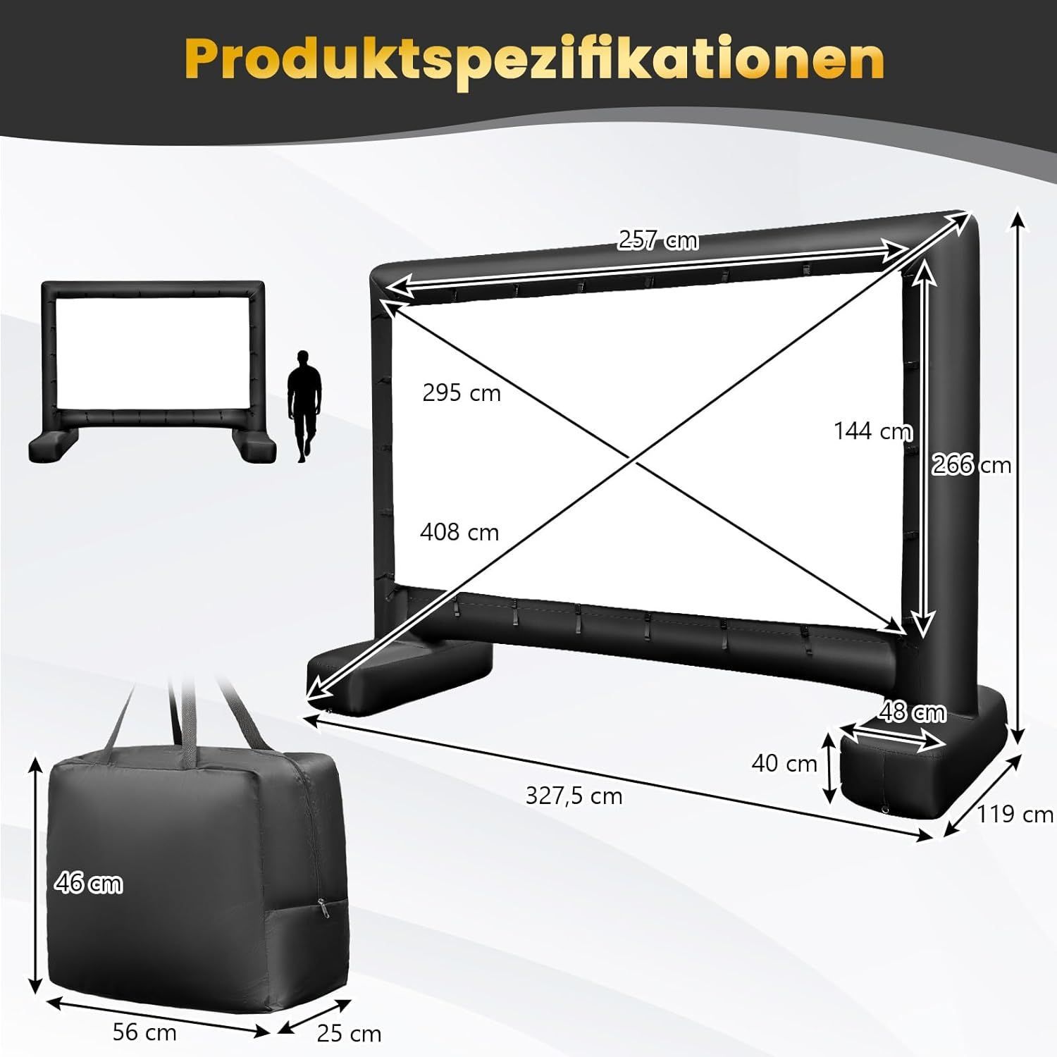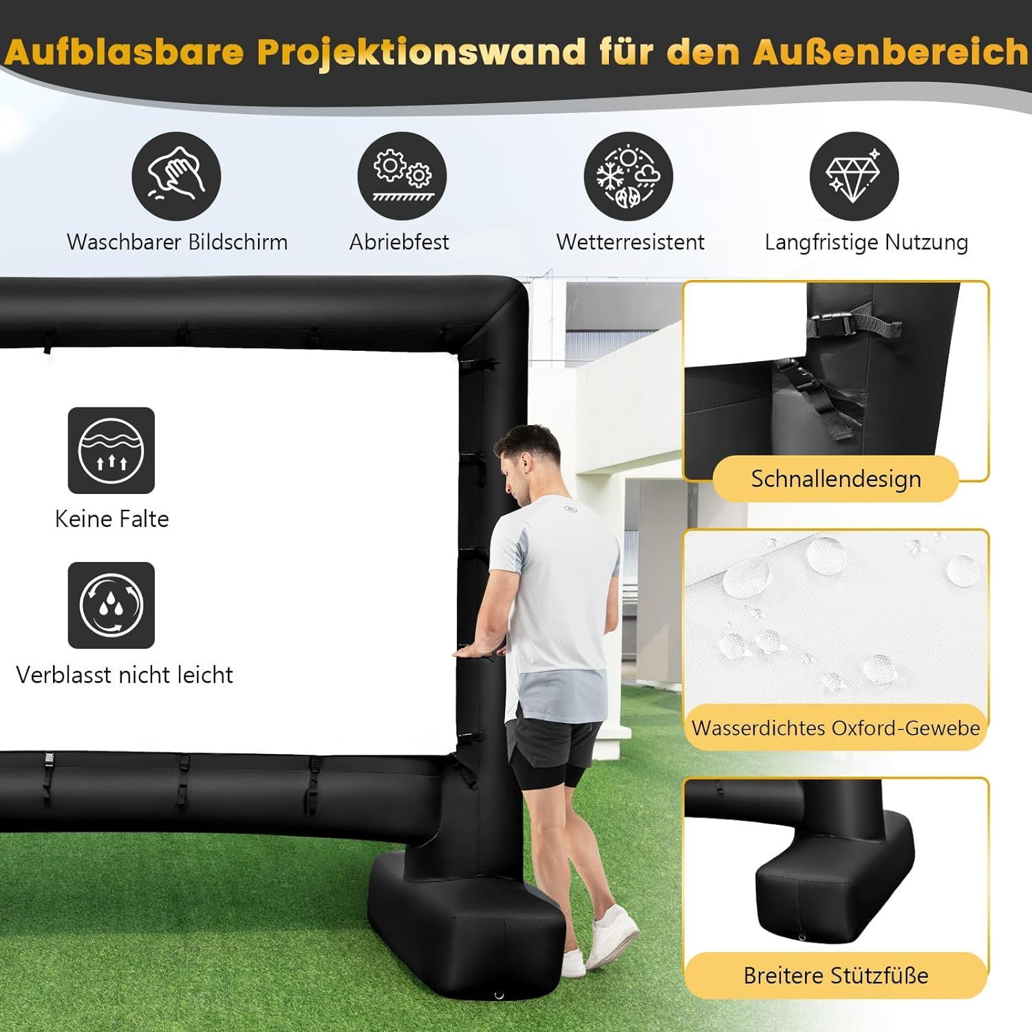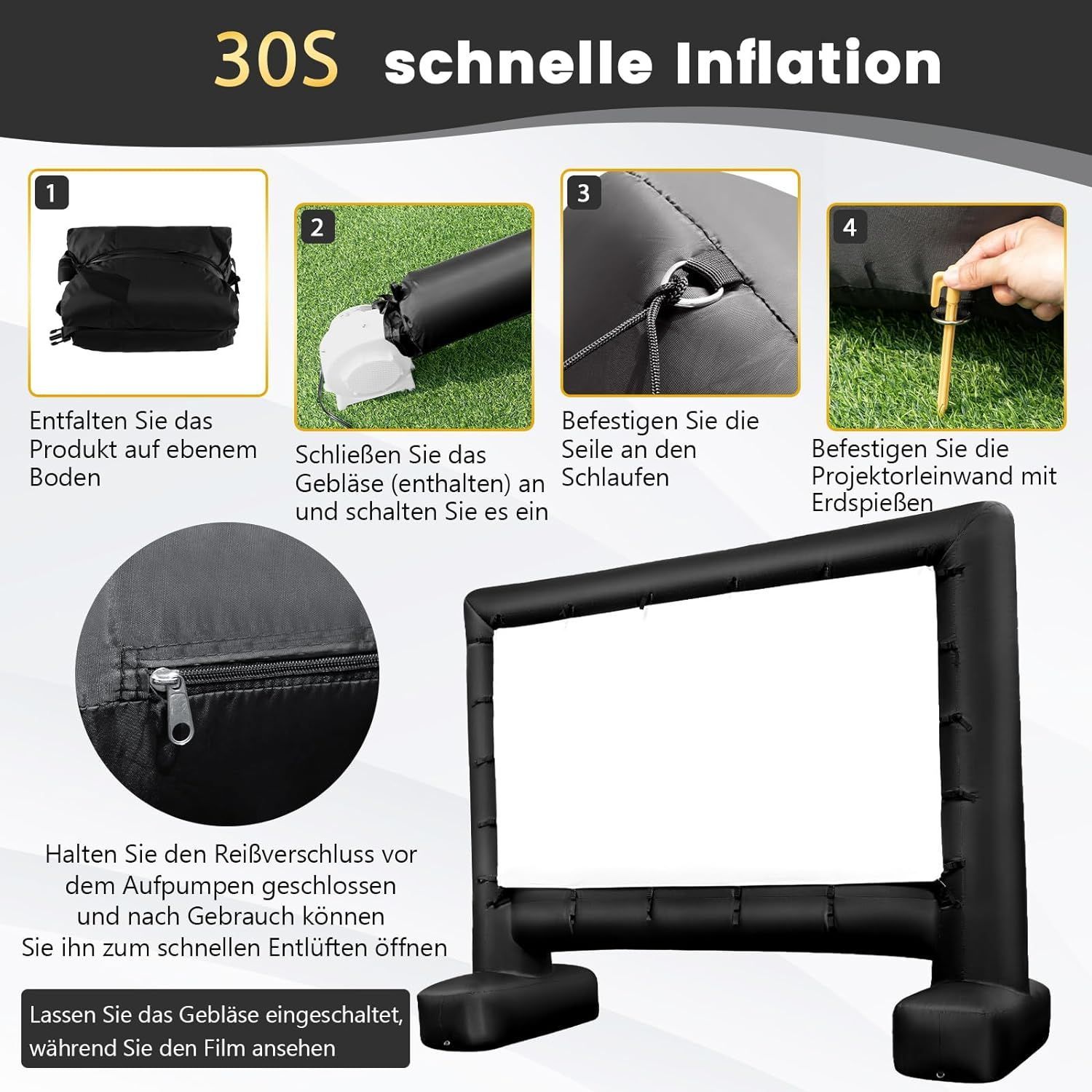 Aufblasbare Beamer Leinwand, 116 Zoll, Projektor Leinwand mit Gebläse und Erdspieße