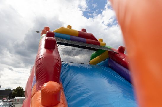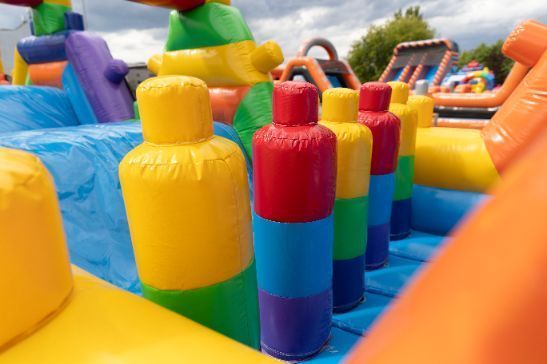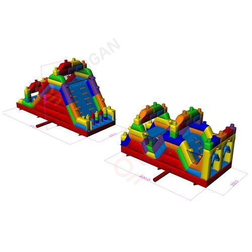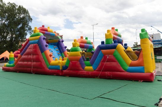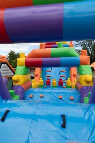 Aufblasbare Hindernisbahn Farbige Blöcke - 15m