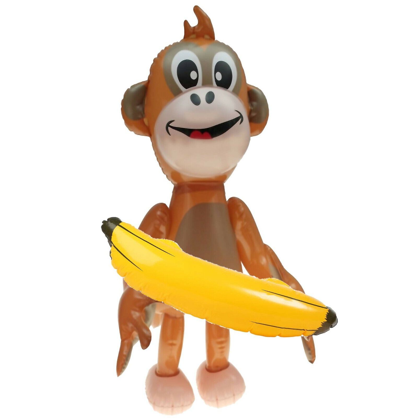 Aufblasbarer lächelnder Affe + Banane aufblasbar Dschungel Tier Zoo Affen Deko