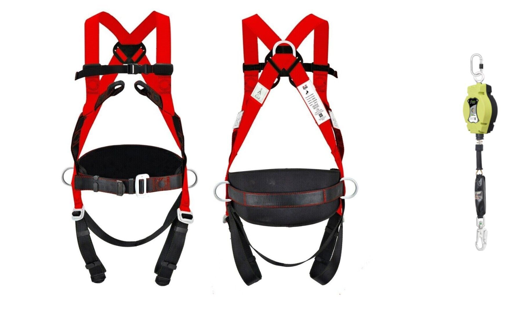 Auffangsystem Höhensicherung Stahlseil 10m + Profi Auffanggurt Fallschutz Gurt