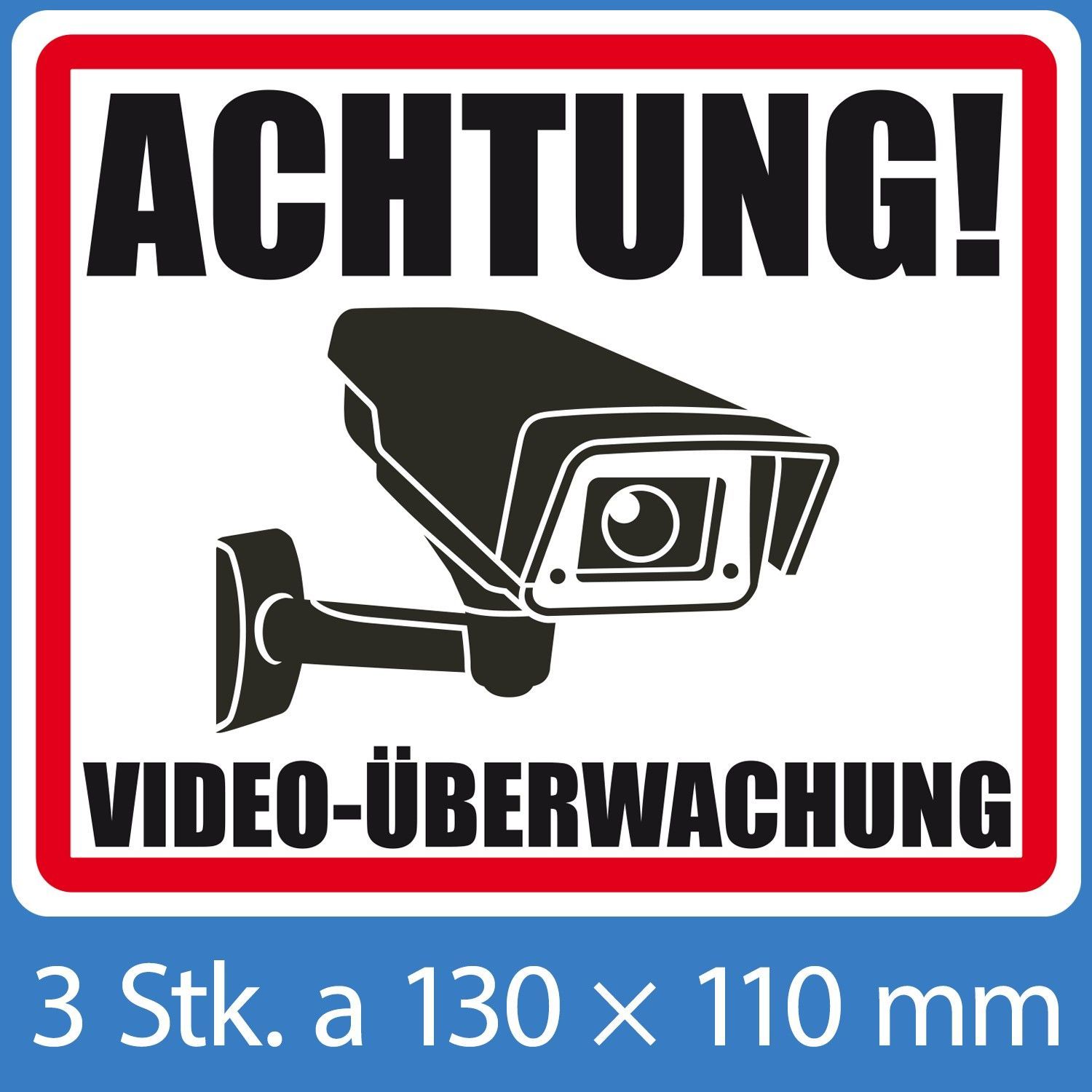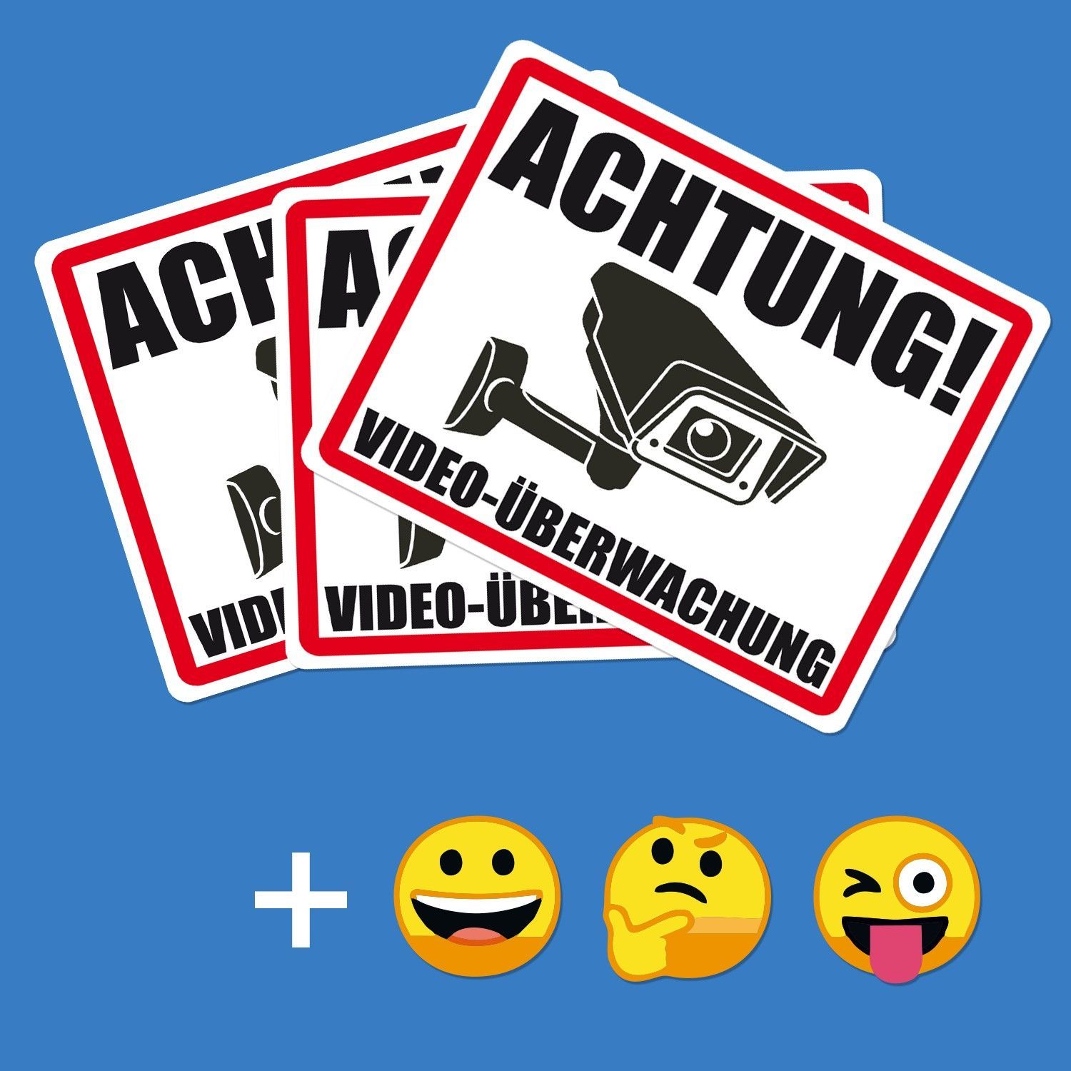 Aufkleber "Achtung Videoüberwachung" 3er Set inkl. 3 Smilie-Aufkleber gratis