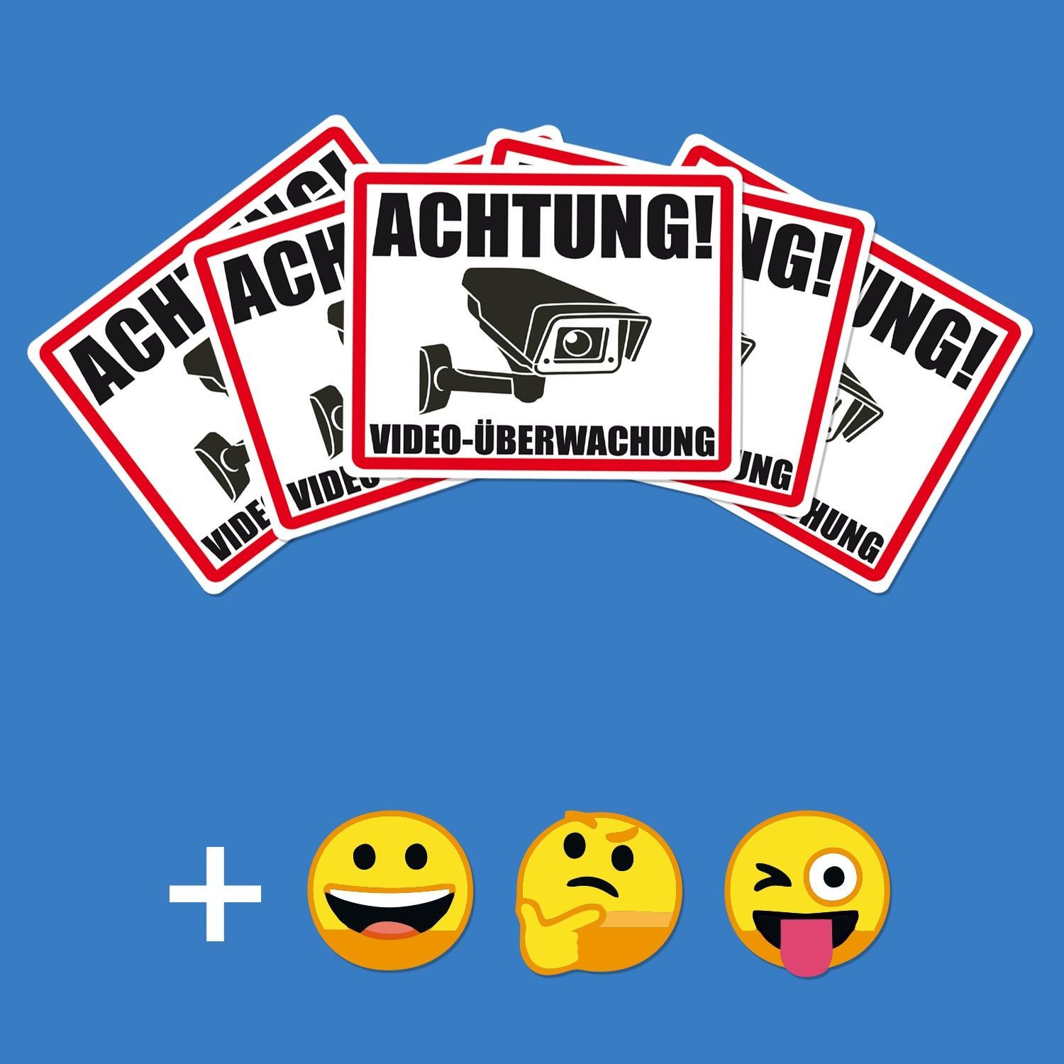 Aufkleber "Achtung Videoüberwachung" 5er Set inkl. 3 Smilie-Aufkleber gratis