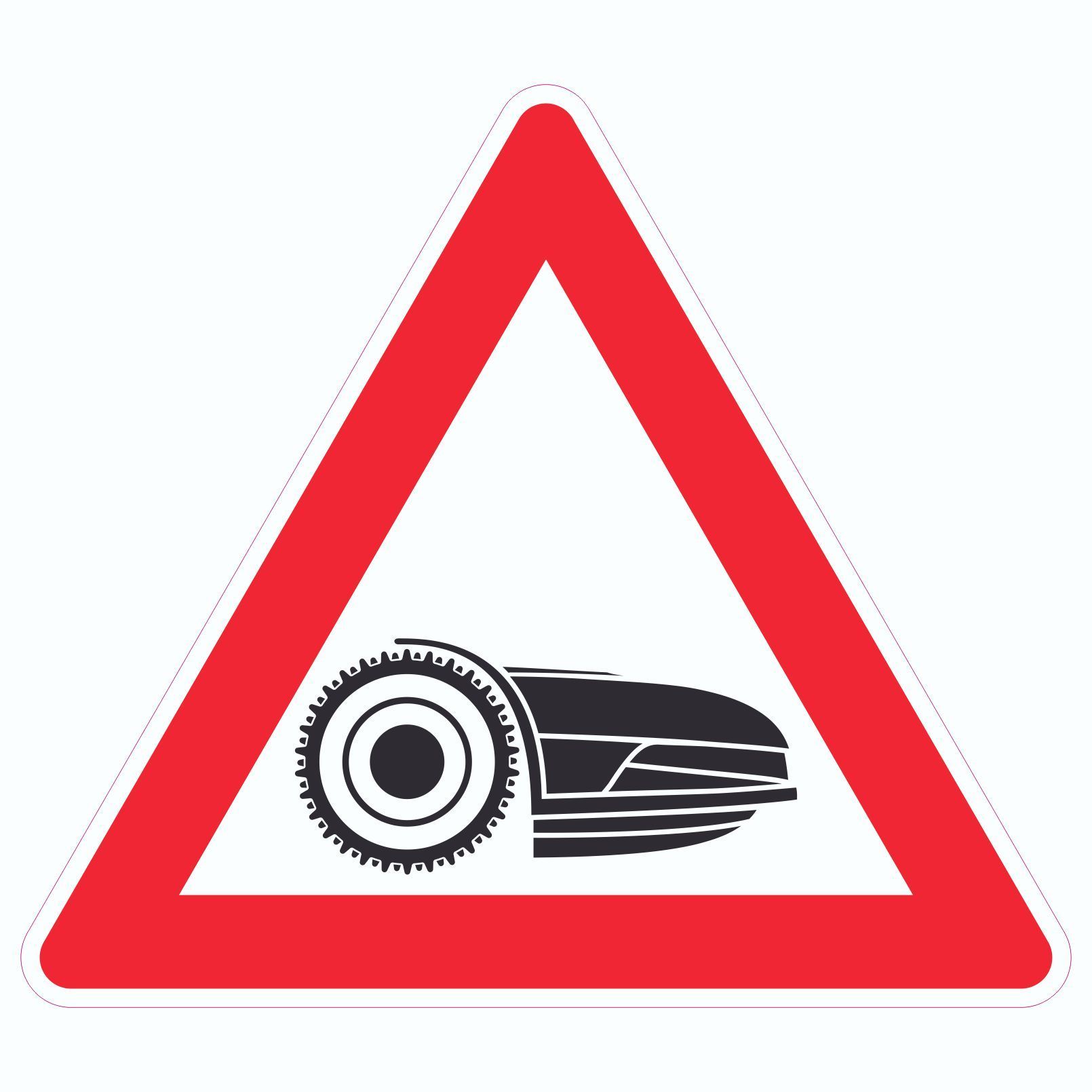 Aufkleber Dreieck Achtung Mähroboter mit Symbol Aufkleber Dreieck