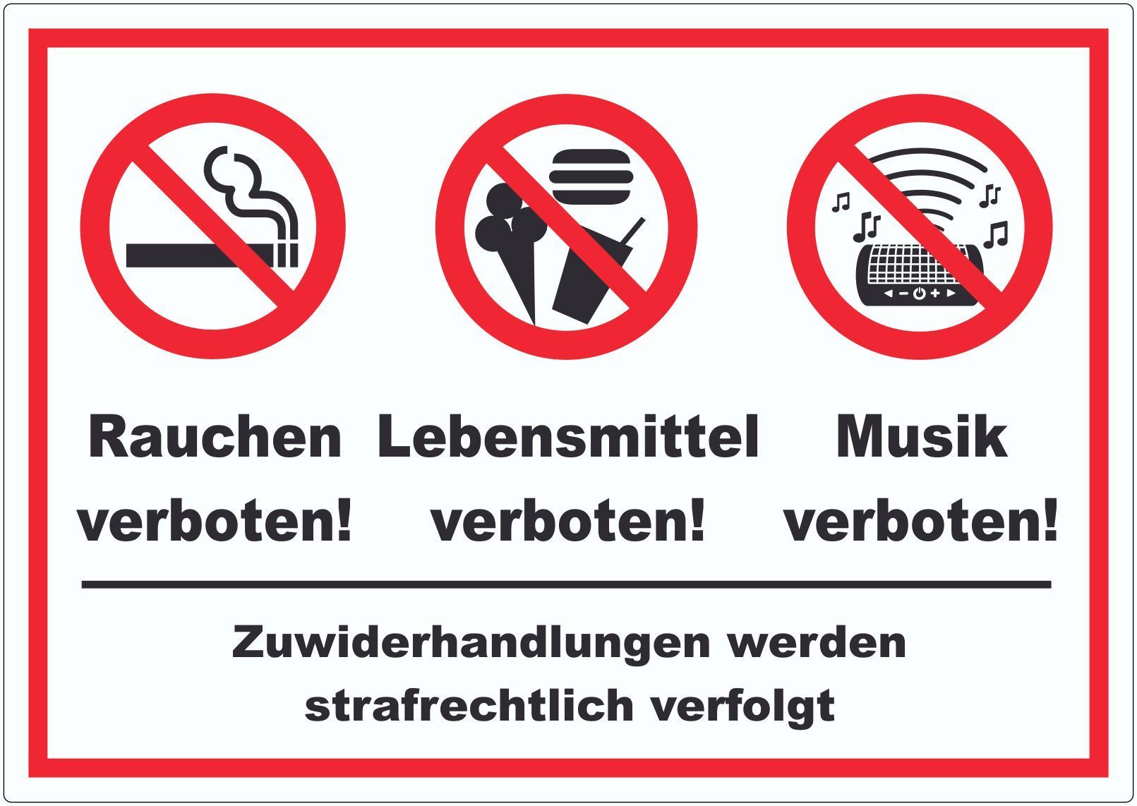 Aufkleber Essen Trinken Musik Rauchen verboten