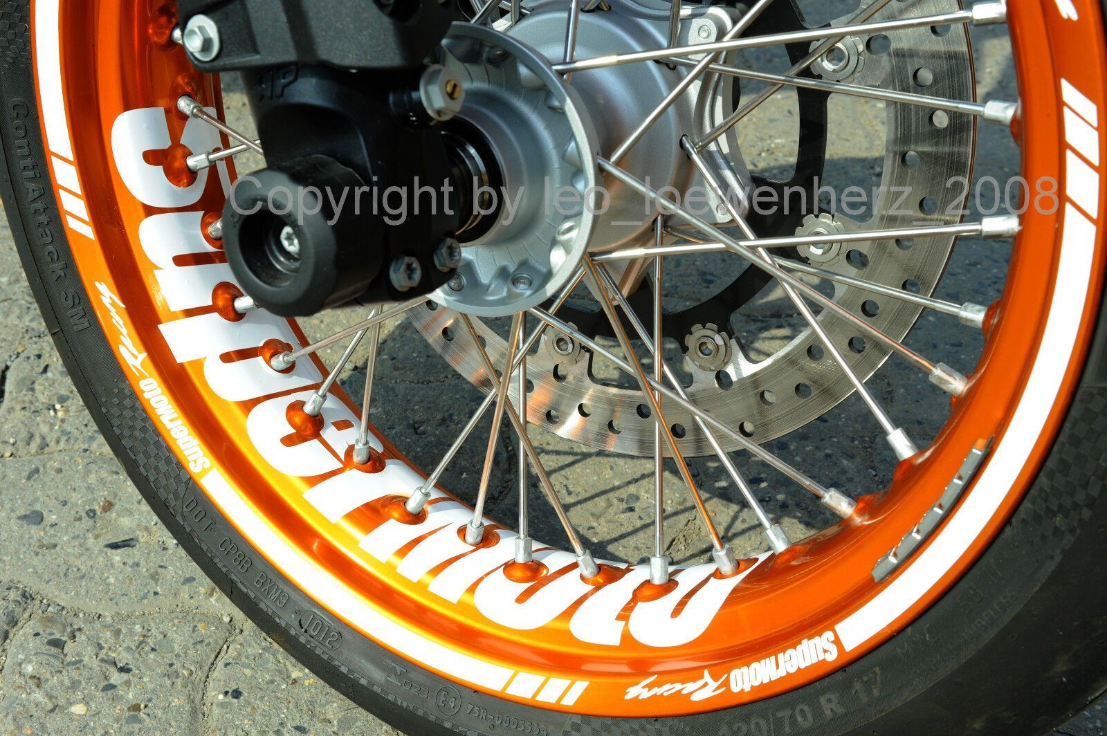 Felgenaufkleber Felgenrandaufkleber für sämtlich Supermoto Das angebotene Aufkleber Set wurde extra für die Supermoto Felgen entworfen und angepasst, anhand einer KTM Felge (siehe Bilder oben mit orangener Felge). Es passt aber auch bei sämtlichen Beta Modellen mit 36-Speichen und 17 Felgen, dh. zB.
