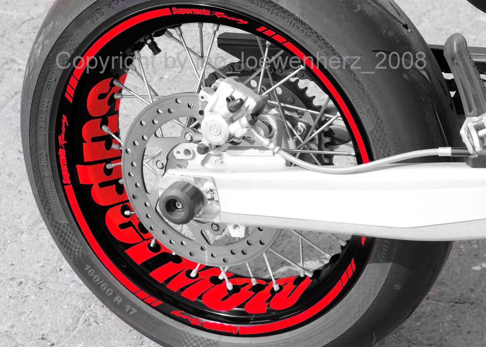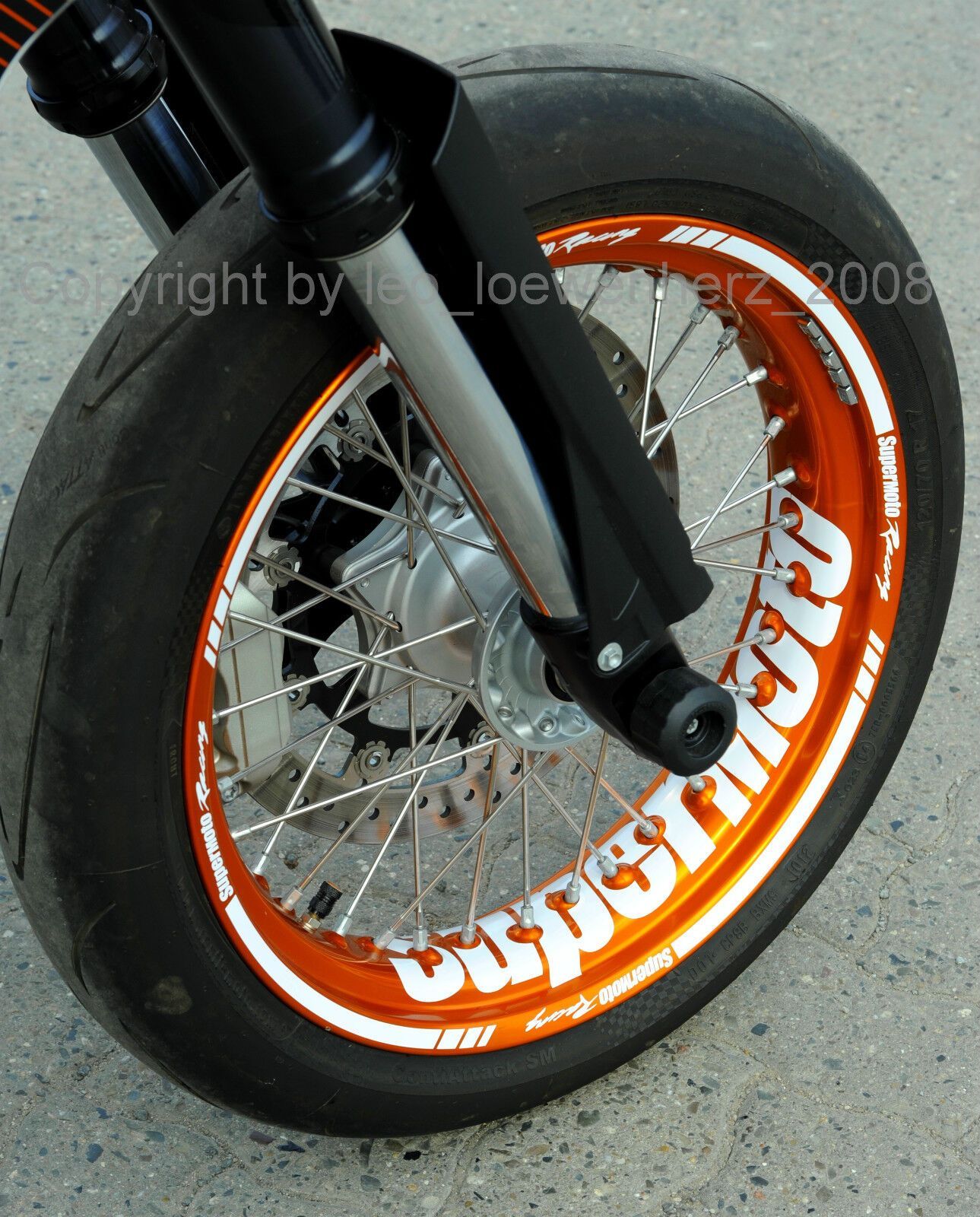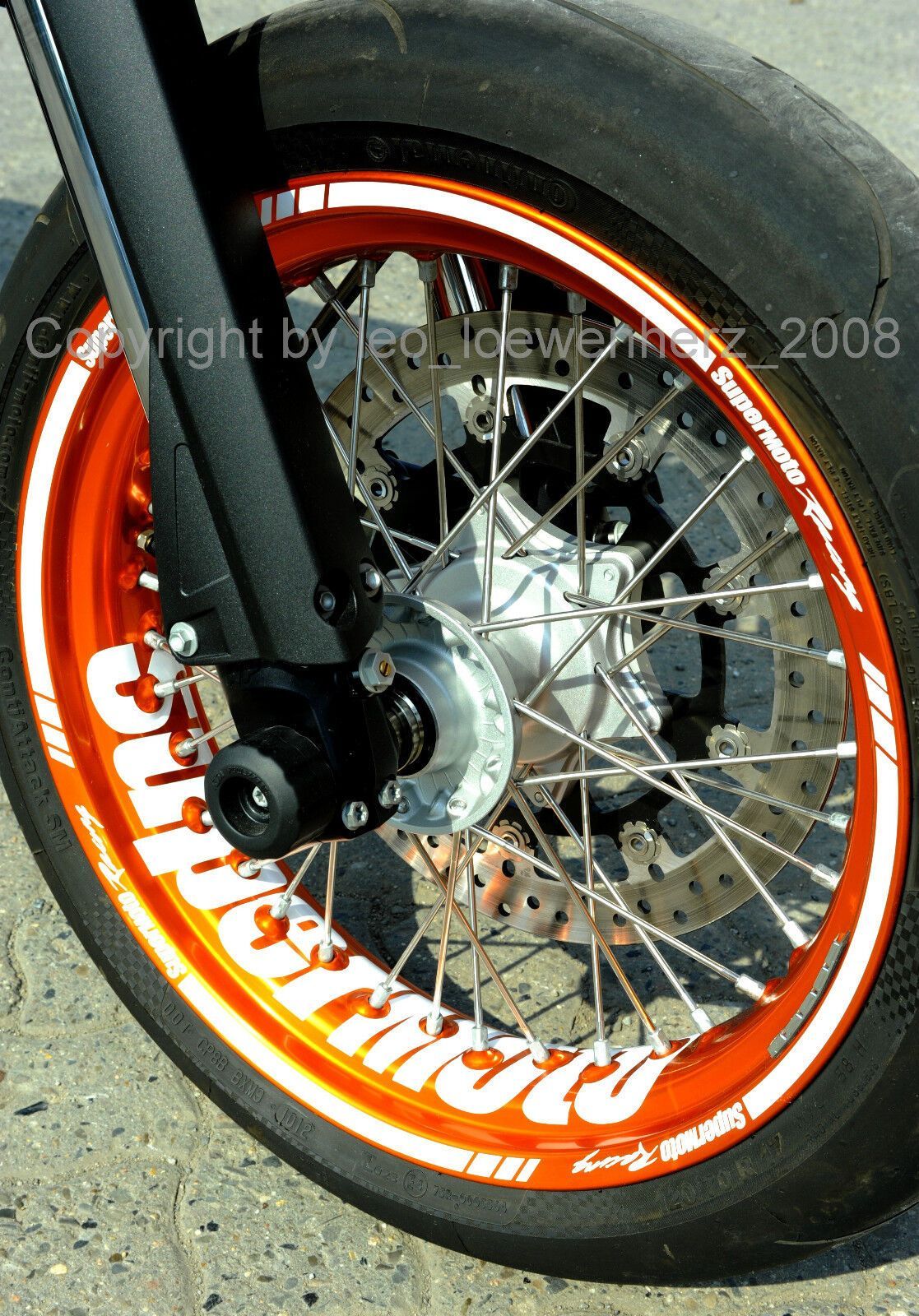 Felgenaufkleber Felgenrandaufkleber für sämtlich Supermoto Das angebotene Aufkleber Set wurde extra für die Supermoto Felgen entworfen und angepasst, anhand einer KTM Felge (siehe Bilder oben mit orangener Felge). Es passt aber auch bei sämtlichen Honda Modellen mit 36-Speichen und 17 Felgen, dh. zB