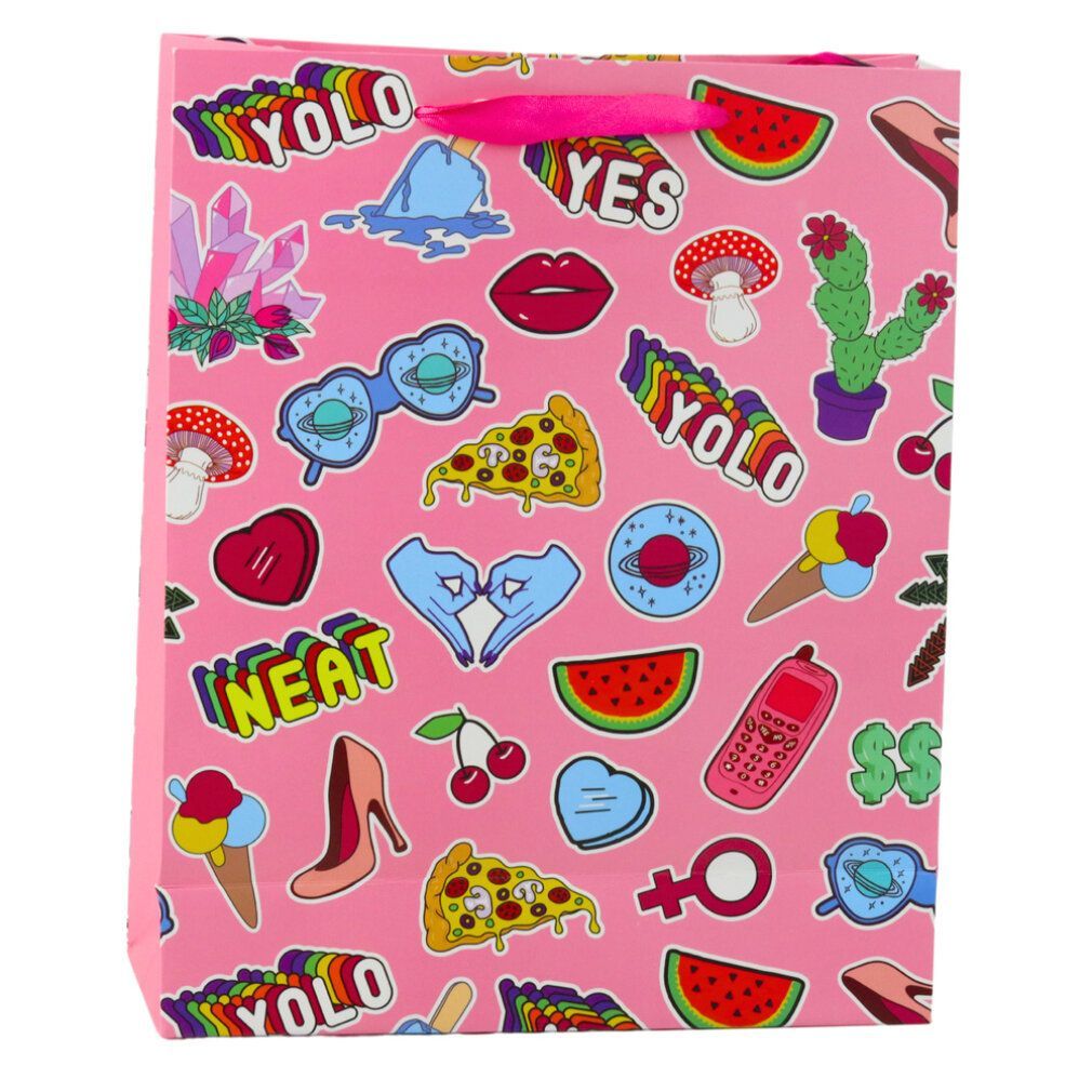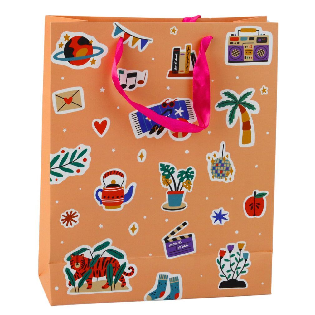 Aufkleber für Geschenktüten, bunte Stempel, 32 x 26 x 12 cm