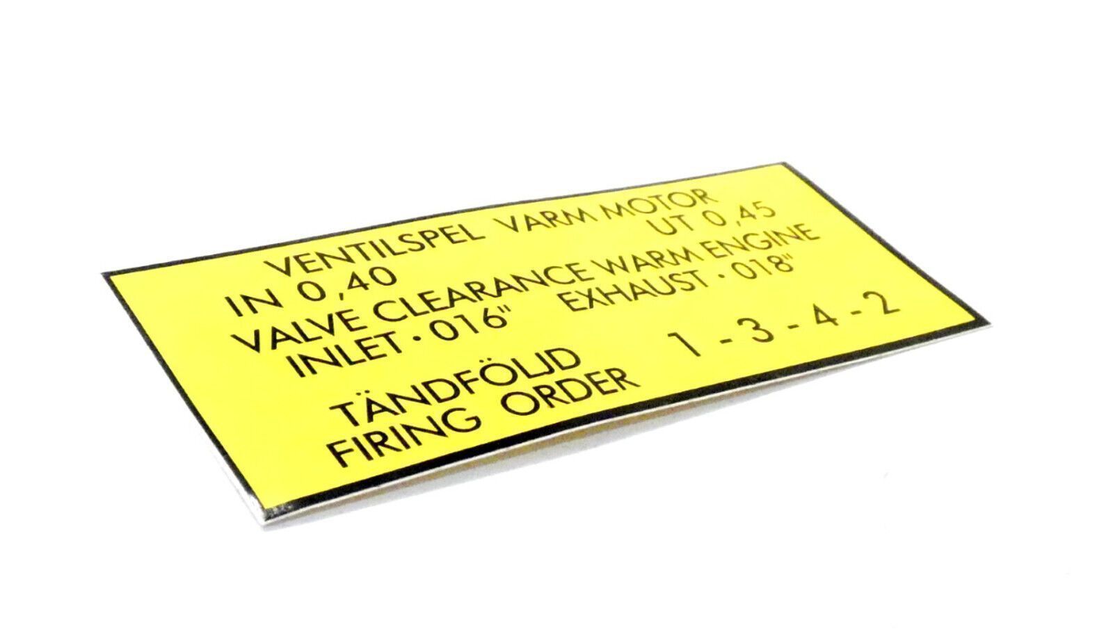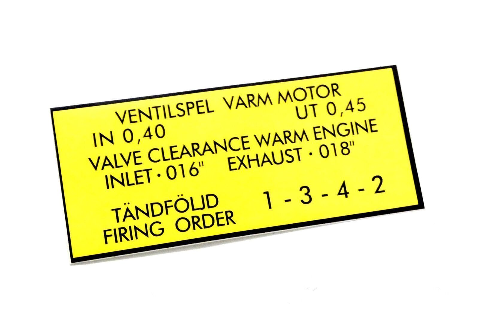 Aufkleber Klebeschild SCHILD Ventilspiel WARME MOTOR FÜR VOLVO