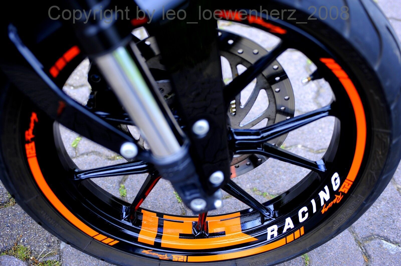 Felgenaufkleber Felgenrandaufkleber für Duke & RC Modelle Das angebotene Aufkleber Set wurde extra für die Felgen der KTM Duke und RC entworfen und angepasst. Es passt bei sämtlichen KTM Modellen mit 10-Speichen Felgen, dh. der KTM Duke 125 200 390 und der KTM RC 125 200 390 etc von Baujahr 2011 - 2