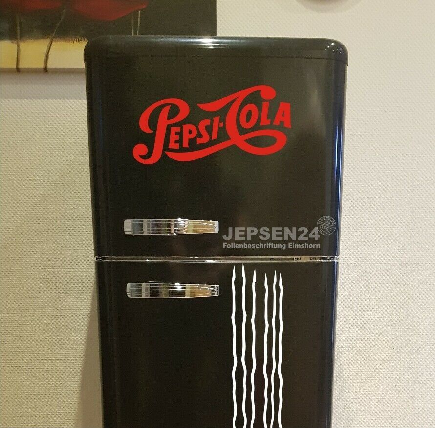 Kühlschrank Aufkleber Für Handelsübliche Kühlschränke geeignet. (Kühlschrank nicht enthalten) Pepsi Cola 30x15cm für Ihren Kühlschrank, Kühltruhen und Automaten. Farbe: andere Farbe auf Anfrage möglich TIPP: Glanz Folie für glatte Oberflächen - matte Folie für Wandtattoos.