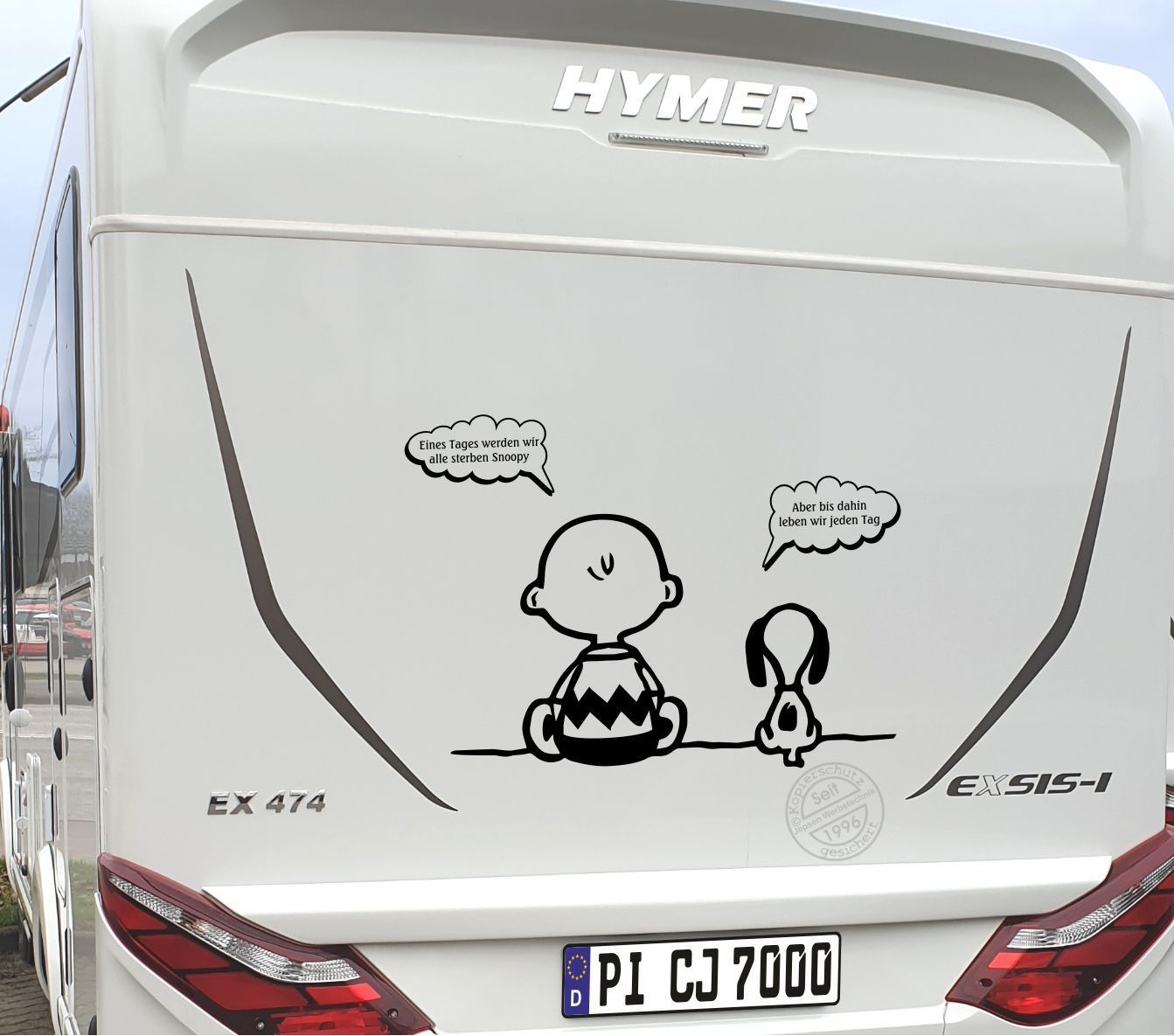 Aufkleber Snoopy Charly ca 110x80cm S086TD Wunschfarbe Wohnmobil Wohnwagen Bus