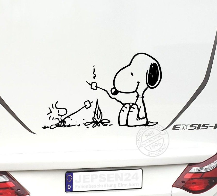 Aufkleber Snoopy Woodstock am Lagerfeuer 100x58cm CW09 + Rakel - Auto Bus Wand