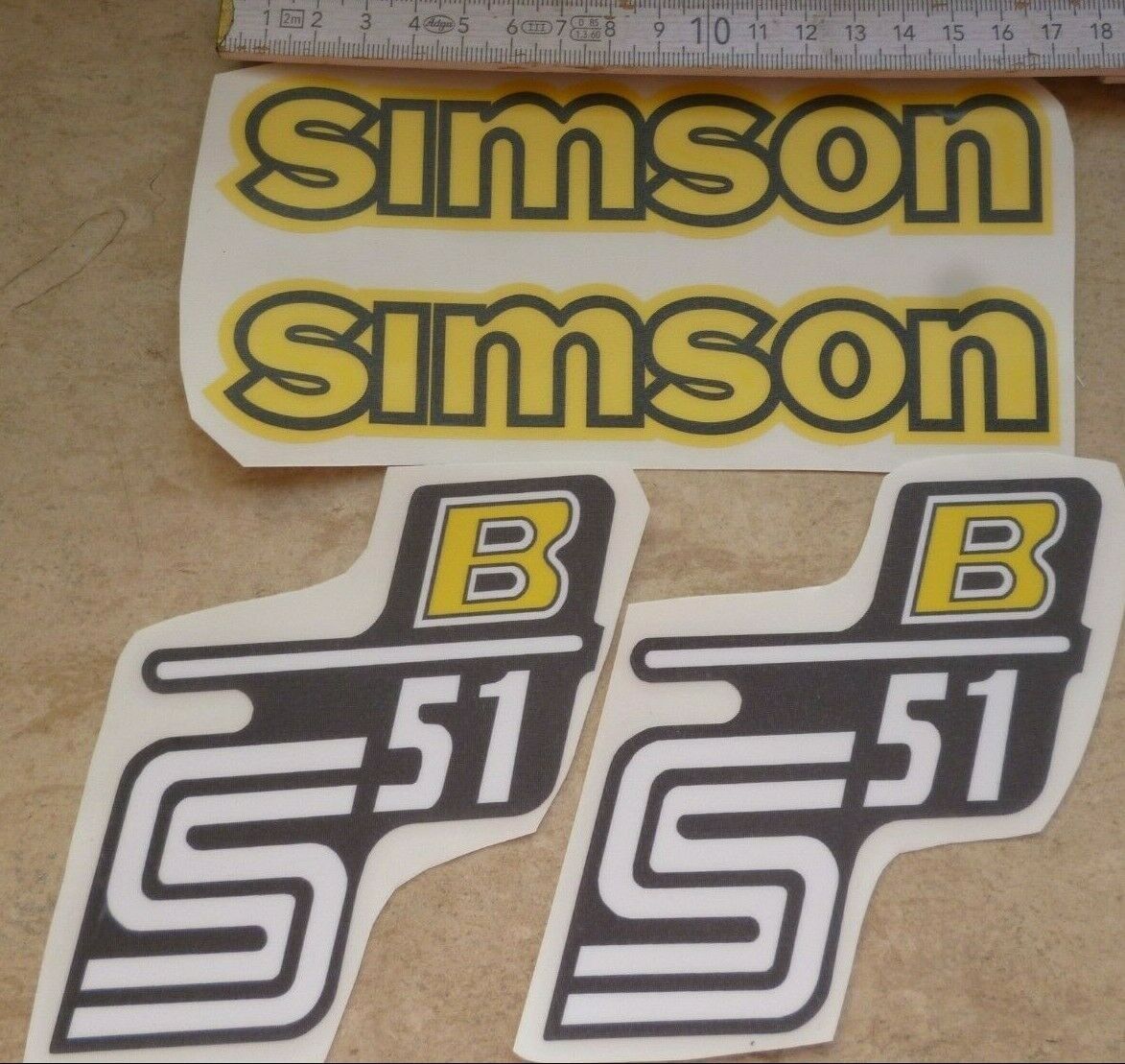 Aufklebersatz, Seitendeckelaufkleber, Tankaufkleber, S51B, gelb-weiß-schwarz, Simson