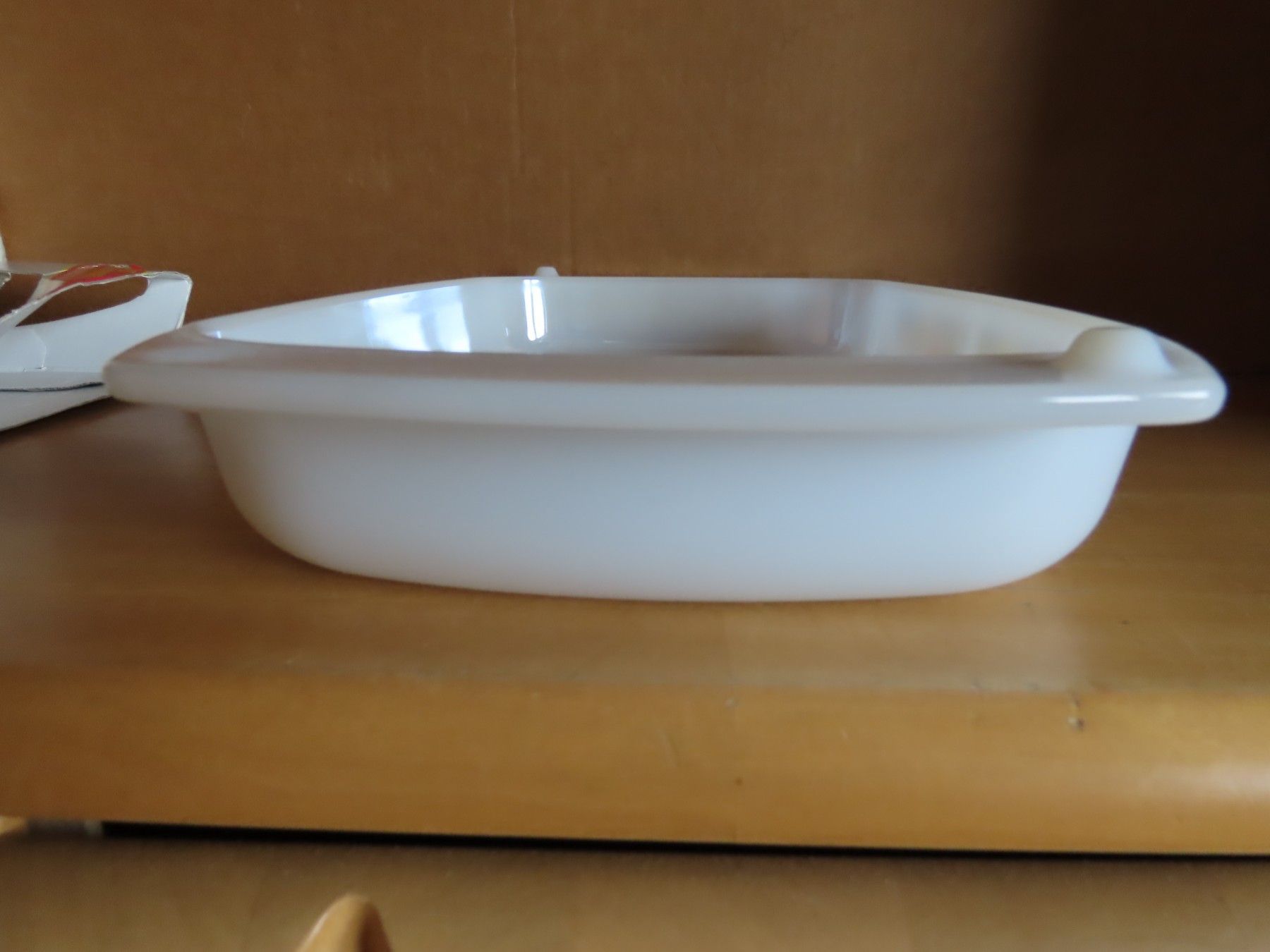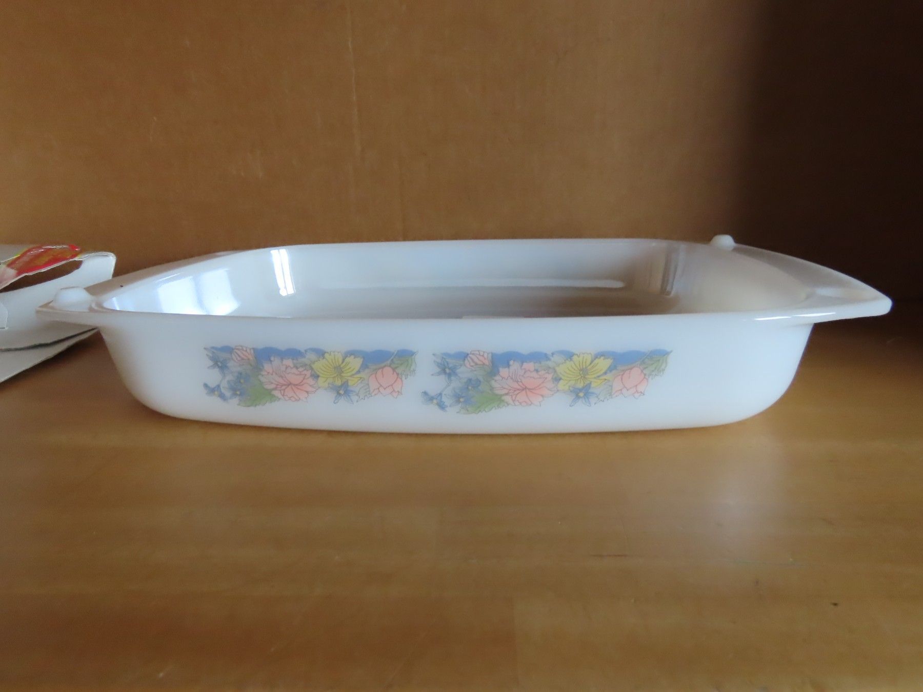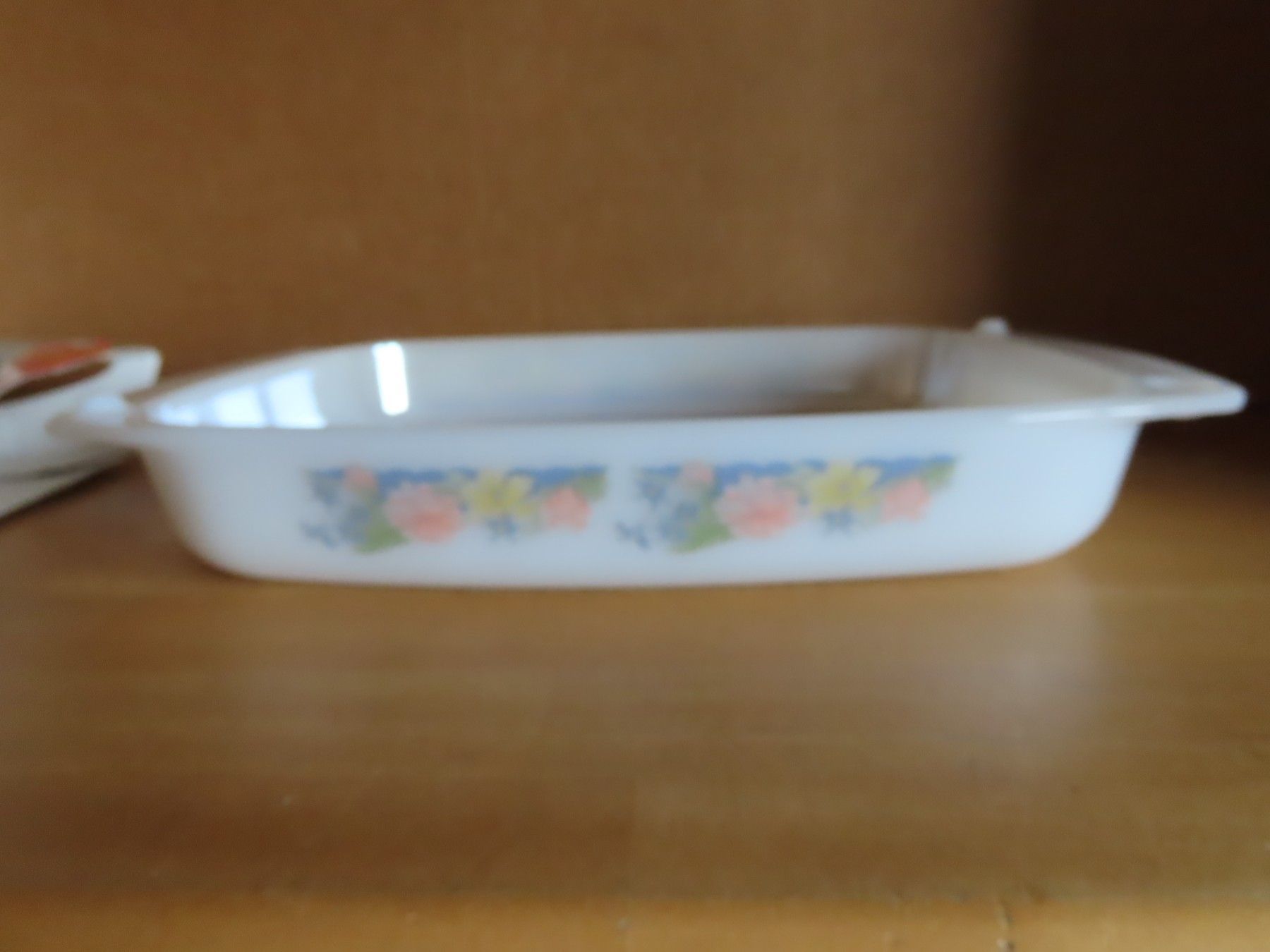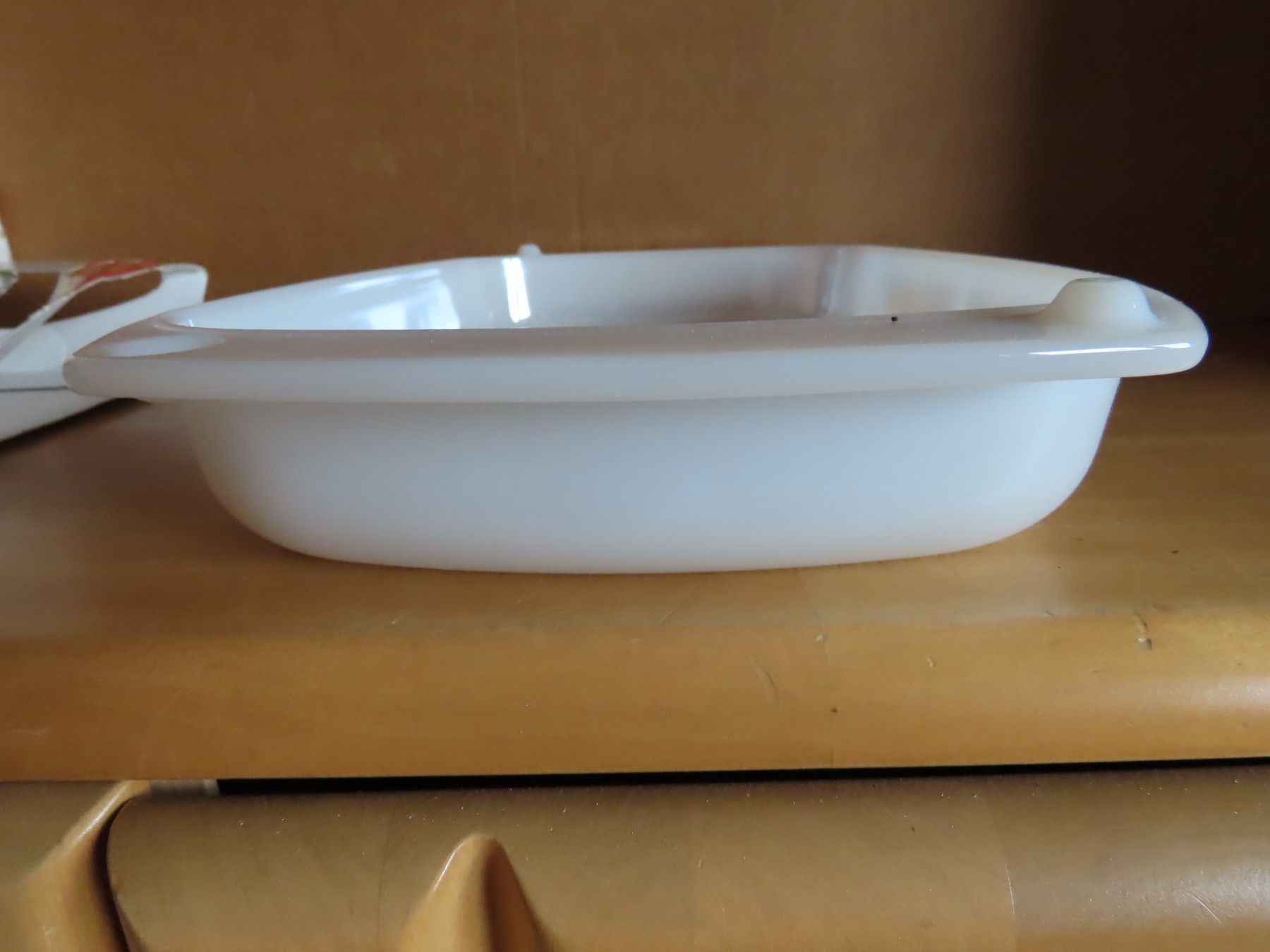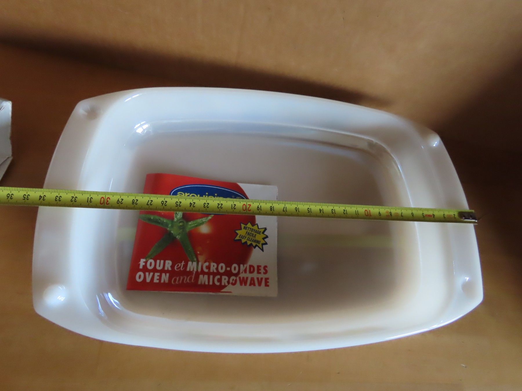 Maße: ca. 5,5 cm hoch x ca. 34,2 cm x ca. 21,5 cm--- Innen am Boden gemessen ca. 25,5 cm x ca. 17 cm x ca. 4,7 cm hoch Material: Glas ist leicht verschmutzt verstaubt Arcuisine 11 France Arcopal