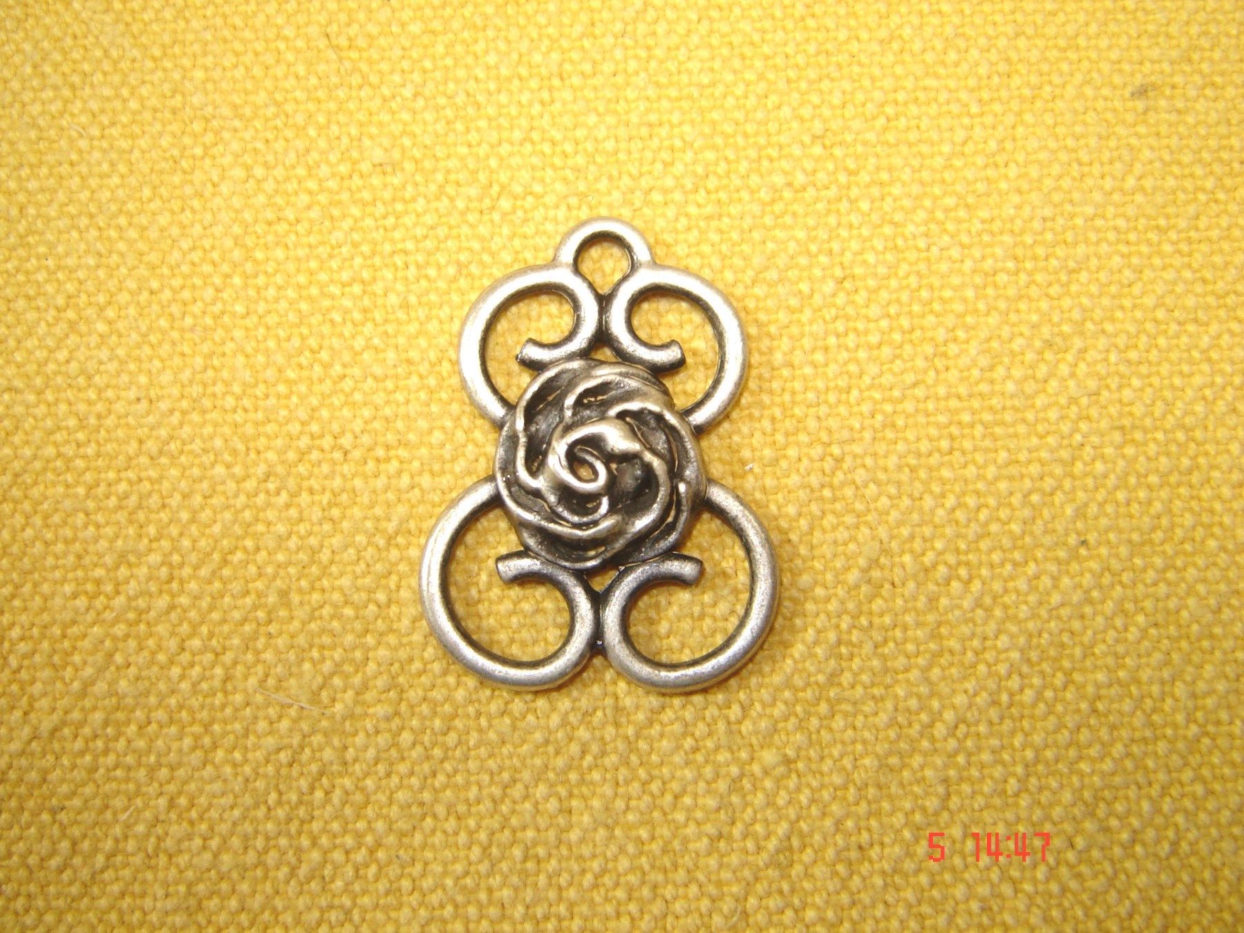 Aufnäher Applikation Trachten Rose Metall altsilberfarben 2,5x3,4 cm Nr12348
