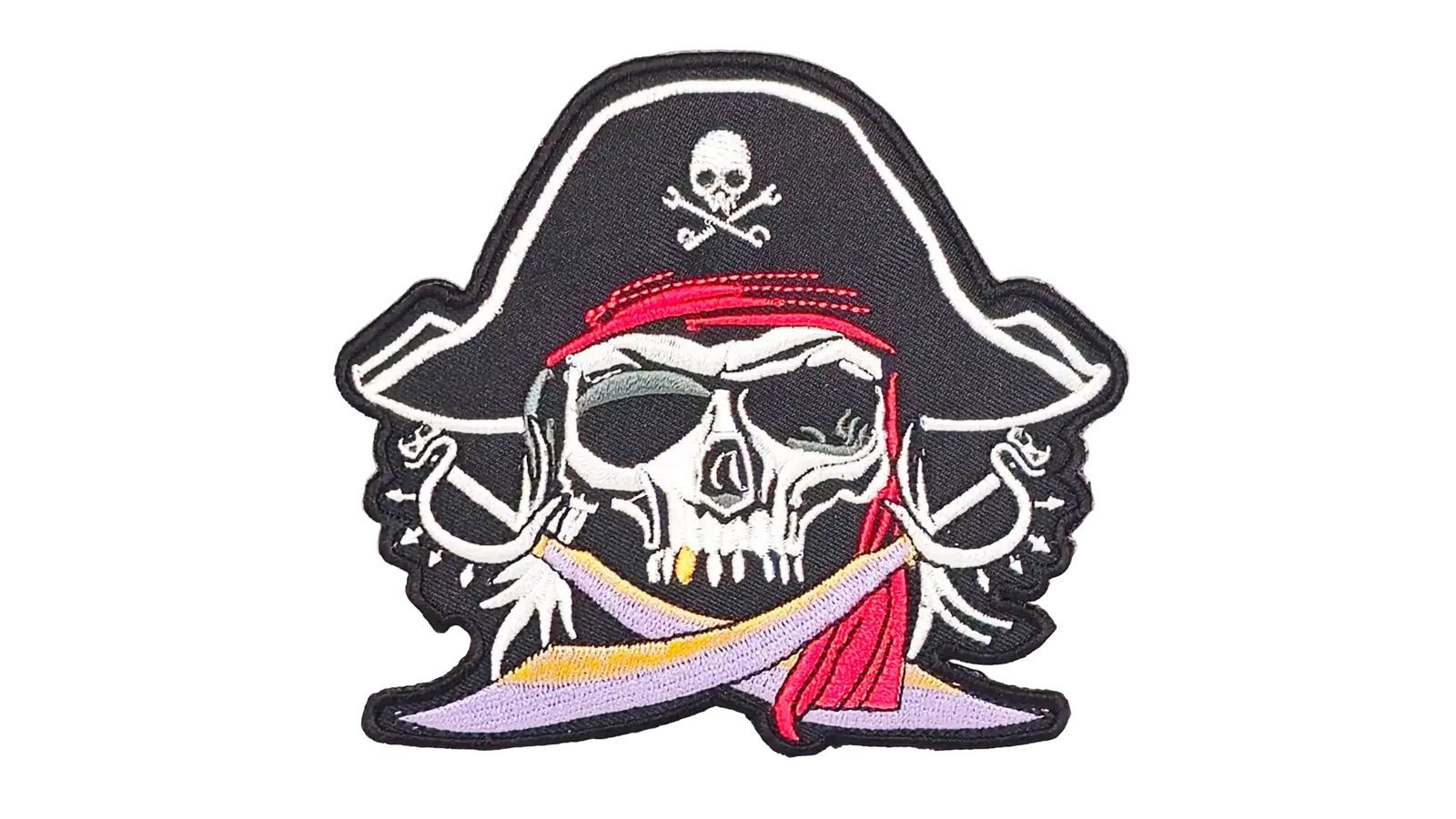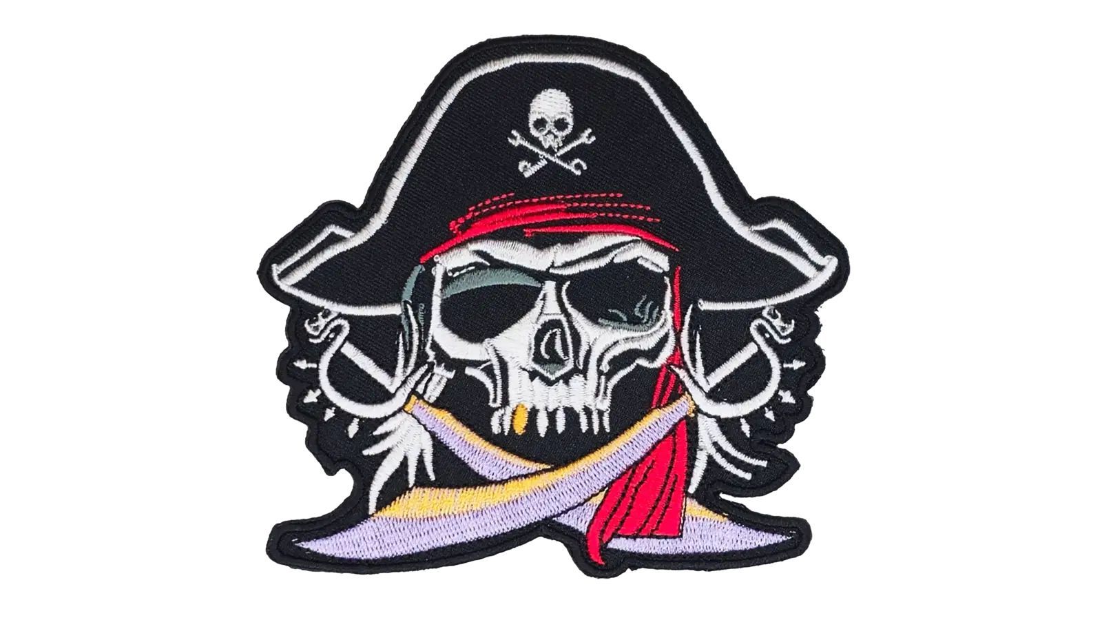Aufnäher Aufbügler Patch Pirat Totenkopf mit Hut und Säbel - 9 x 10 cm